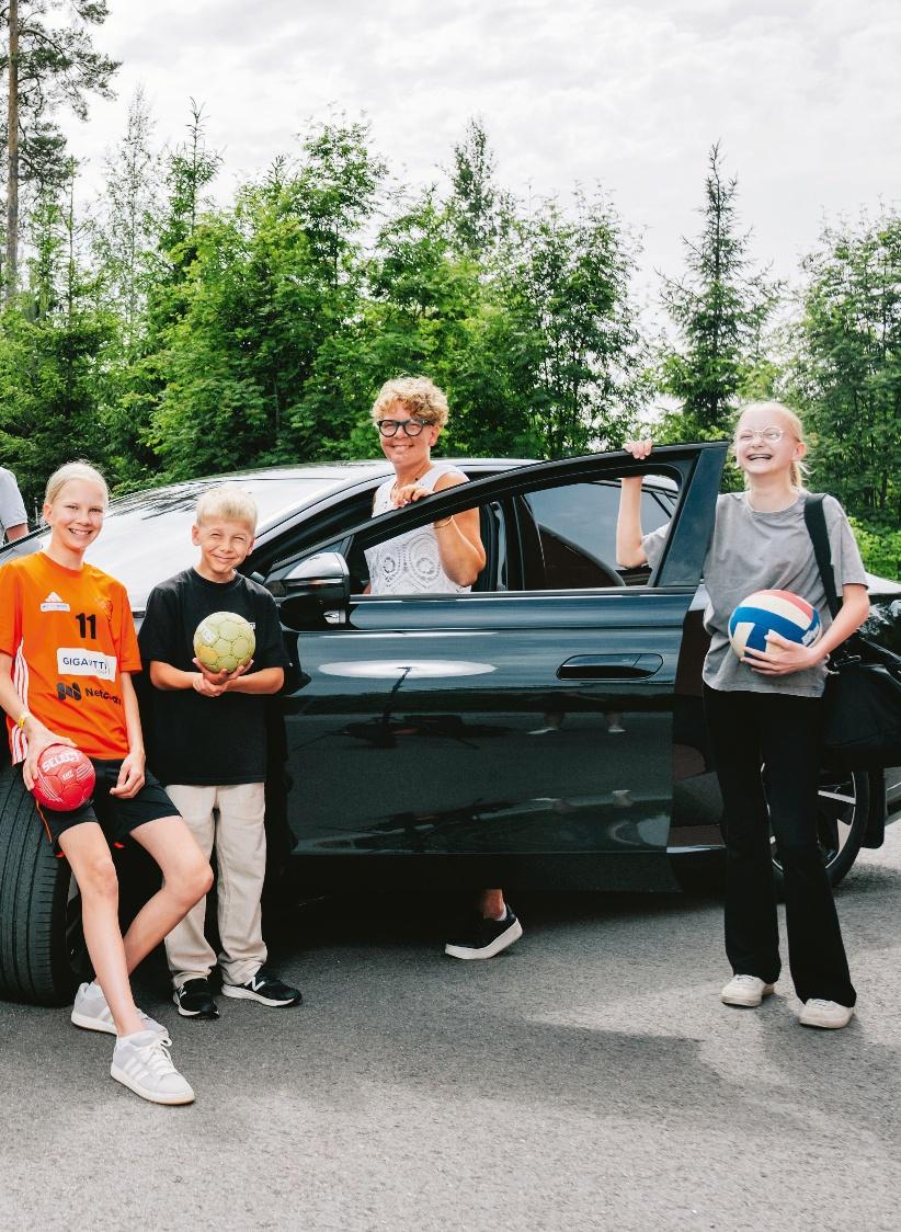 Kuusilapsisen perheen äidille Heljä Paanaselle auto on tärkeä arjen työkaveri. Sähköauto on tuonut säästöä Paanasten työmatkakuluihin.