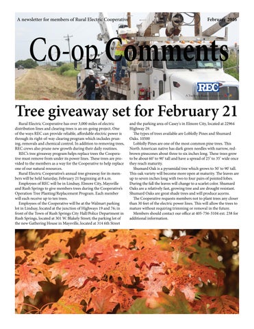 Rural Electric Cooperative’s annual tree giveaway for its members will be held Saturday, February 11 beginning at 8 a.m.