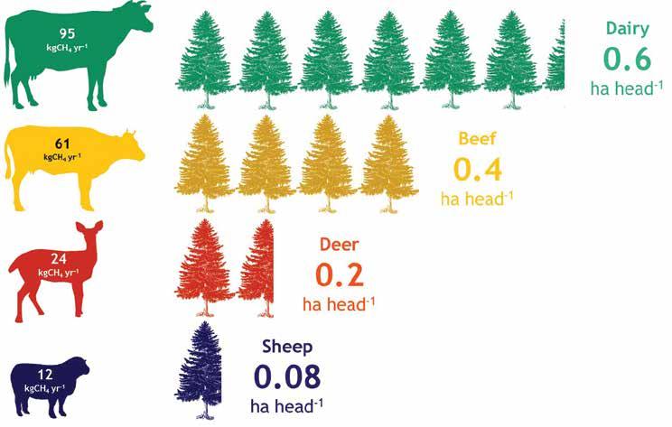 to offset methane emis sions of individual ani mals. In the case of a dairy cow, 0.6ha would be required, 0.4ha for