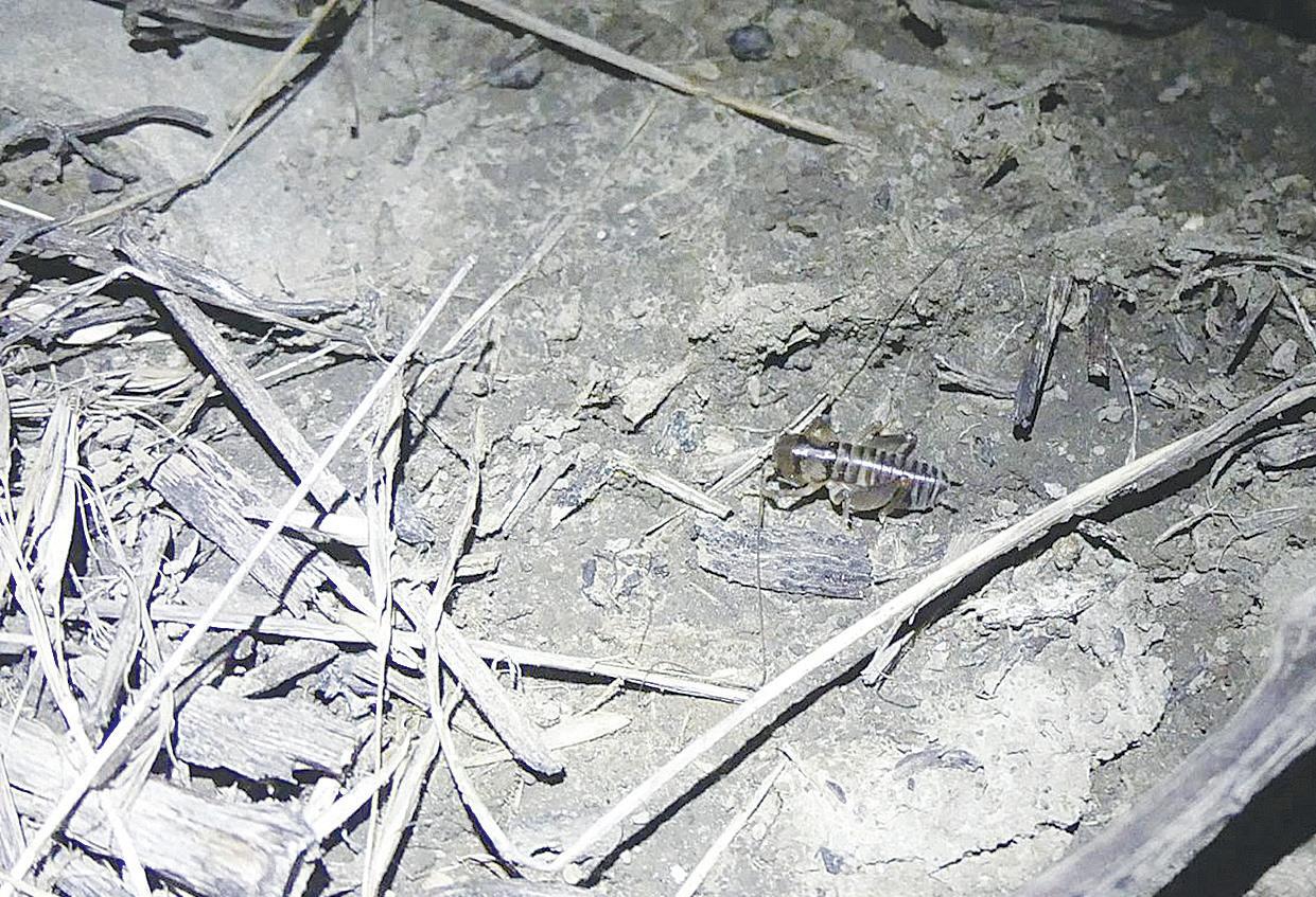 Ground wētā during an evening survey in the Awatere winegrowing region in September 2022
