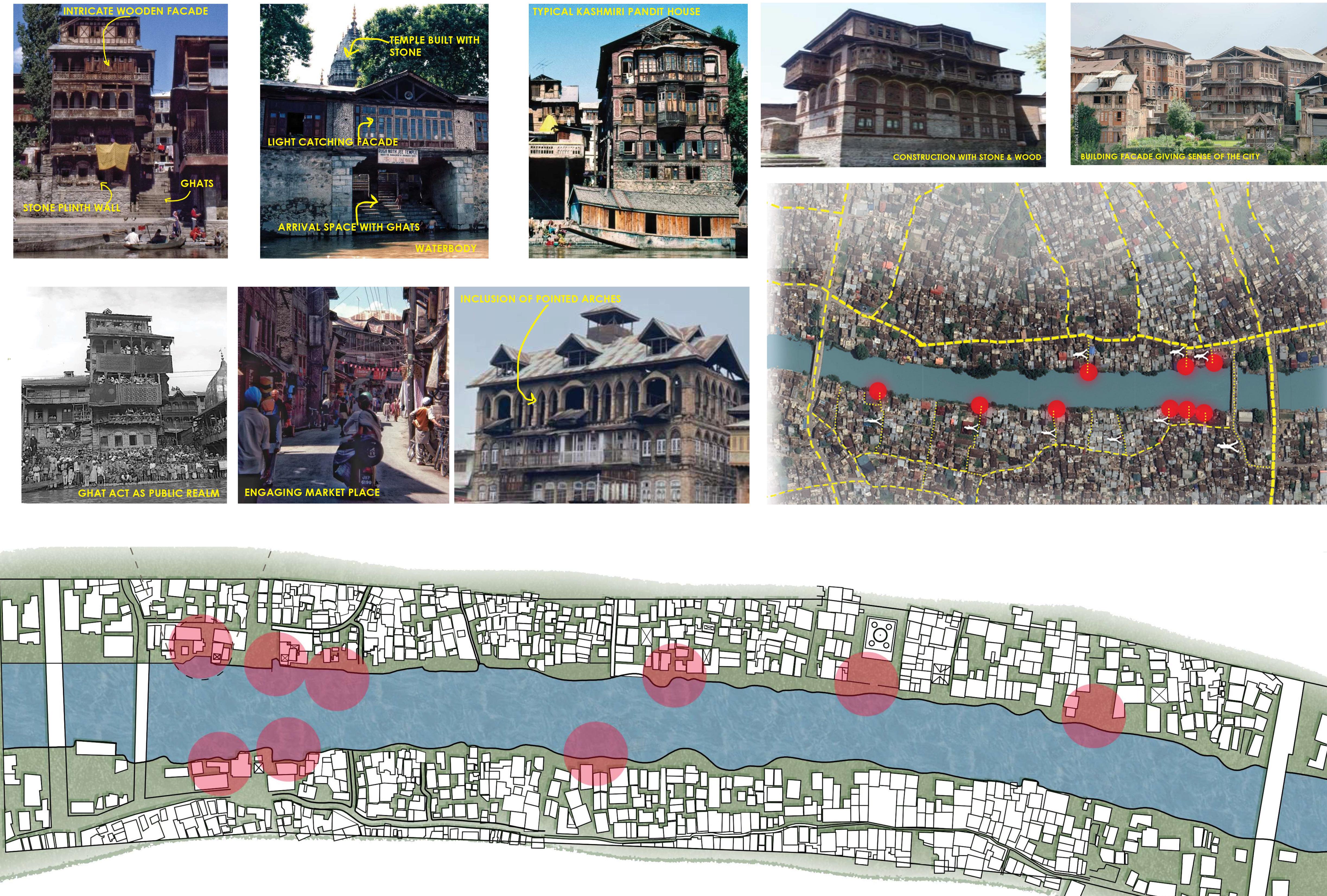 Waterfront improvement is a major focus in urban design. In the Old City of Srinagar, many old houses have their backs facing the riverside , leading to neglect and poor maintenance of this area. This has resulted in significant garbage issues . Additionally, walking along the river is difficult due to infrastructural challenges .