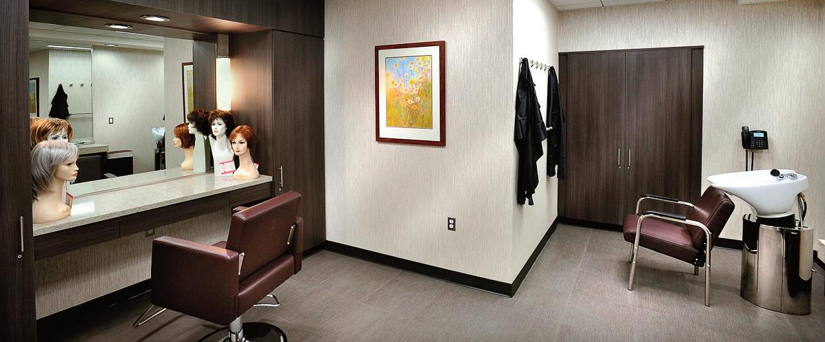 Salon services are available for those experiencing hair loss due to cancer treatments. Services include addressing treatment-related hair changes, customizable complimentary wigs, wig care, options for head coverings, and assistance with styling hair as it grows back.