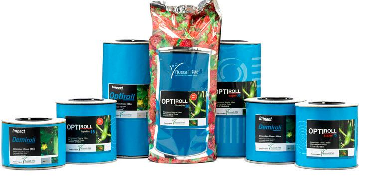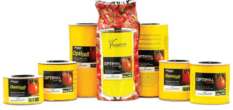 A robust thrips management system combining the Blue Optiroll Super Plus rolls (p.8), and MagiPal (p.11). Trial results demonstrated a reduction of 95% in thrips numbers by combining the Push-Pull system to catch adult thrips, with predatory mites that feed on thrips larvae.