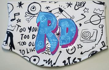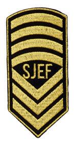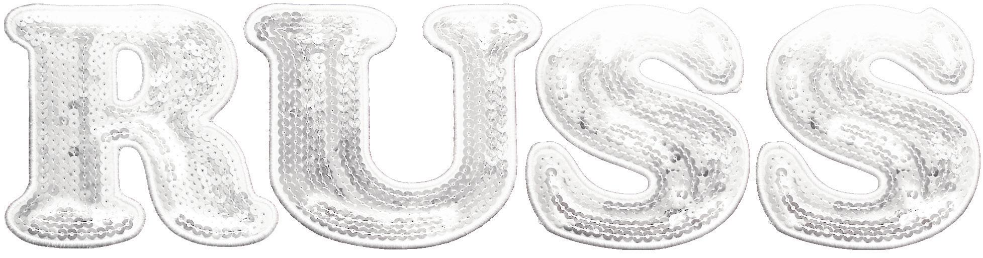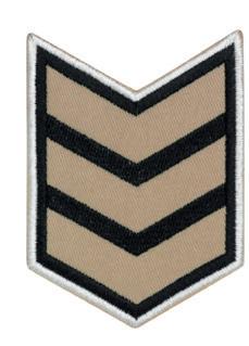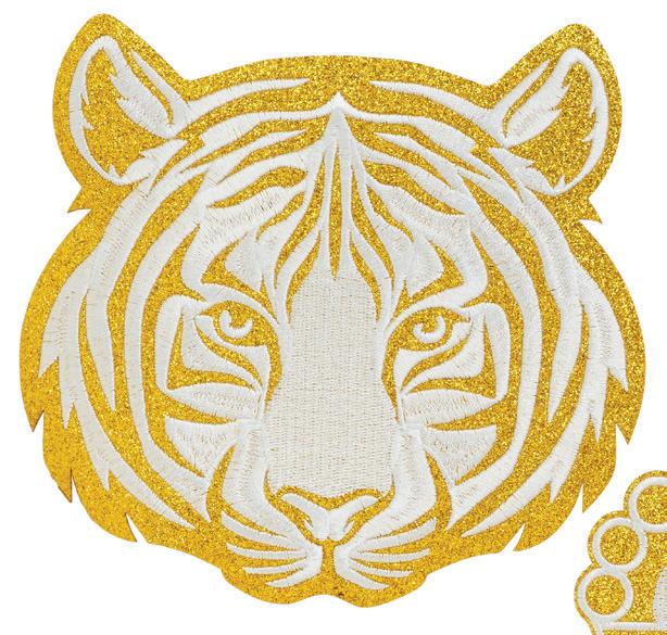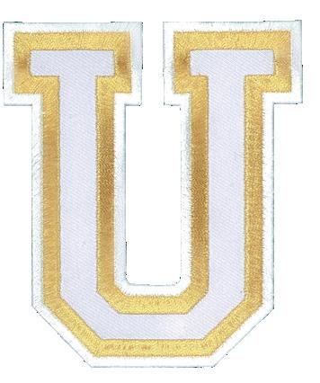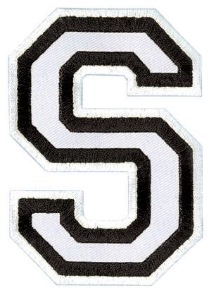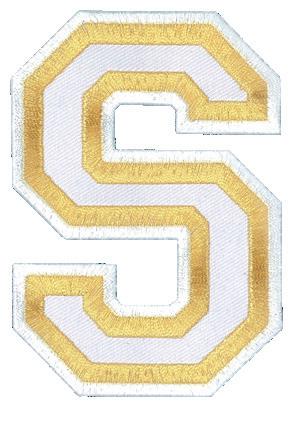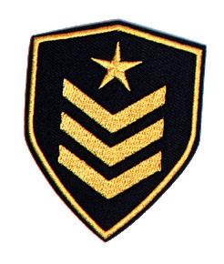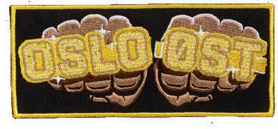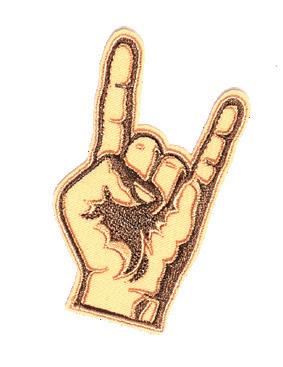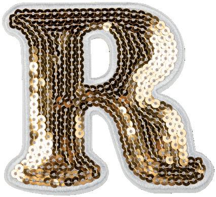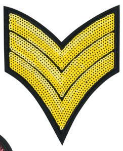 Fornavn, etternavn eller gruppenavn, brodert i gulltråd. Bredde: 12 cm.