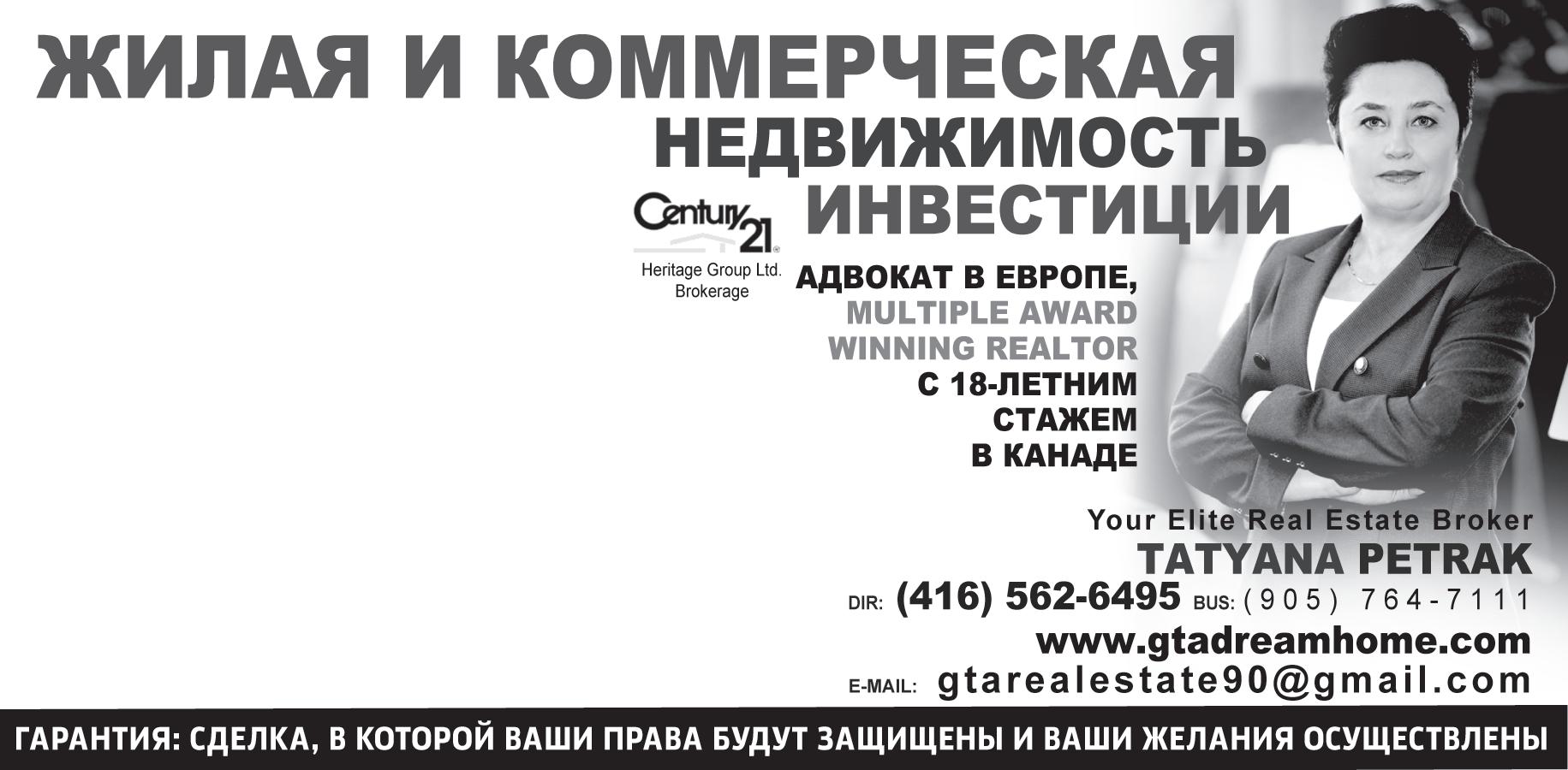 TORONTO EXPRESS weekly newspaper Published by Canadian Russian Press Inc Издатель Майя Мастер Отв секретарь Мария Михайлова редакцИОнная кОллегИя а� Г ладков с� П етренко а� Г ерштейн верстка