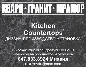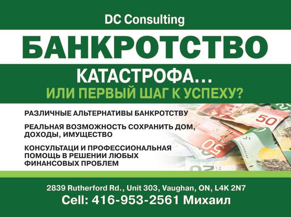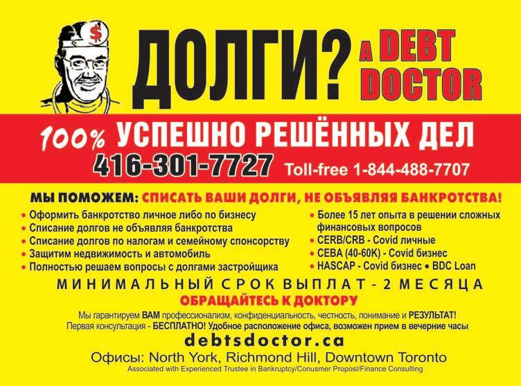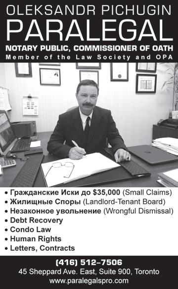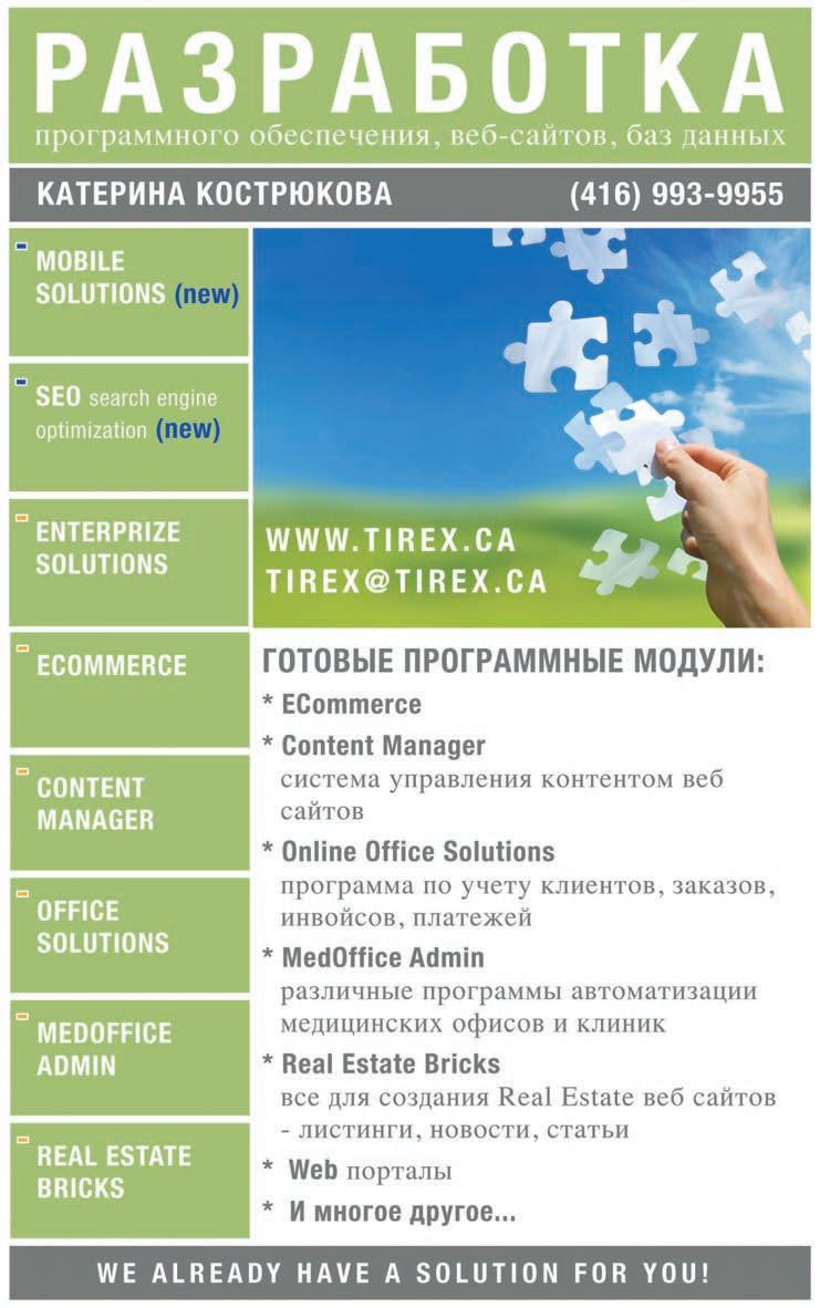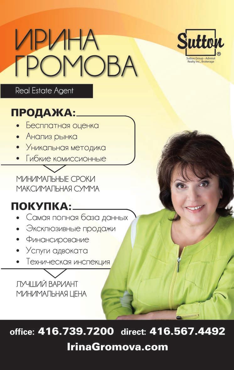 11 www.masterpages.ca (416) 663-3999 Потому что жизнь продолжается, и каждый из нас может сделать ее лучше для себя, своей семьи, общины. Мы от души благодарим наших рекламодателей, наших читателей, с уверенностью и надеждой на то, что лучшие времена обязательно придут. Я хочу пожелать