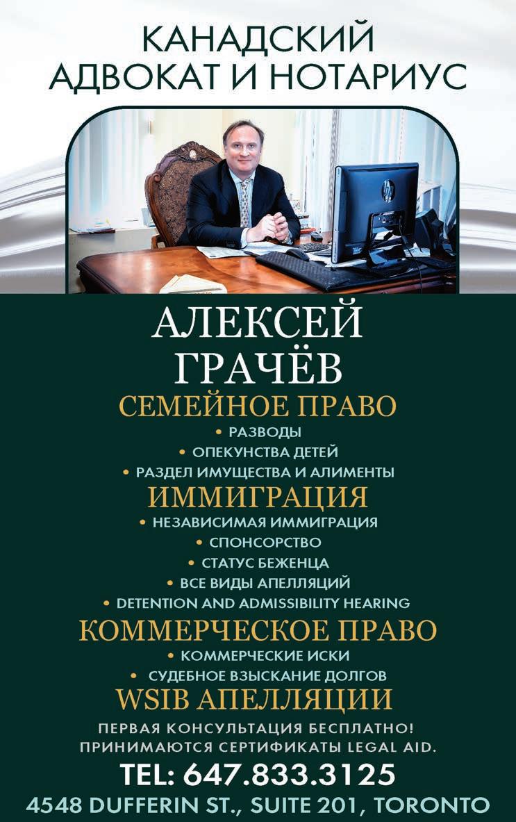 As every effort is made to provide accurate information in this publication, however Canadian-Russian Press Inc. is not responsible for any omissions or errors. Advertisers shall be responsible for the contents of the advertisement.