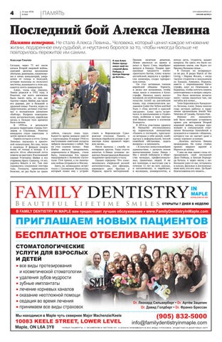 всегда дети, студенты задают вопросы. Но здесь это было совершенно иначе, как будто собралась большая семья... В Польшу он возвращался не раз. В рядах March of the Living - Марша Жизни, - когда тысячи студентов и школьников из Канады, Америки, Израиля, вместе с пережившими Катастрофу, идут из Освенцима в Биркенау, чтобы почтить память уничтоженных в лагерях смерти. Это было нелегким испытанием - вновь оказаться там, где погибла вся семья... Член Королевского Канадского Легиона, Алекс Левин многие годы активно работал в правлении организации Jewish War Veterans of Canada, Toronto Post. Именно его инициативой было ежегодно устраивать прием для ветеранов Второй мировой войны, которые проживают в специальном отделении больницы Sunnybrook и нуждаются в главном - общении, которого так не хватает даже в самых хороших условиях. ...Болезнь настигла Левина неожиданно. Но Алекс стойко принял вердикт врачей и боролся до конца. 9 мая он еще нашел силы отпраздновать свой последний День Победы, в Центре Бернарда Бетела. А через месяц с небольшим ушел от нас, оставшись в книгах, фильмах и воспоминаниях всех, кто его знал. Да будет благословенна его память...
