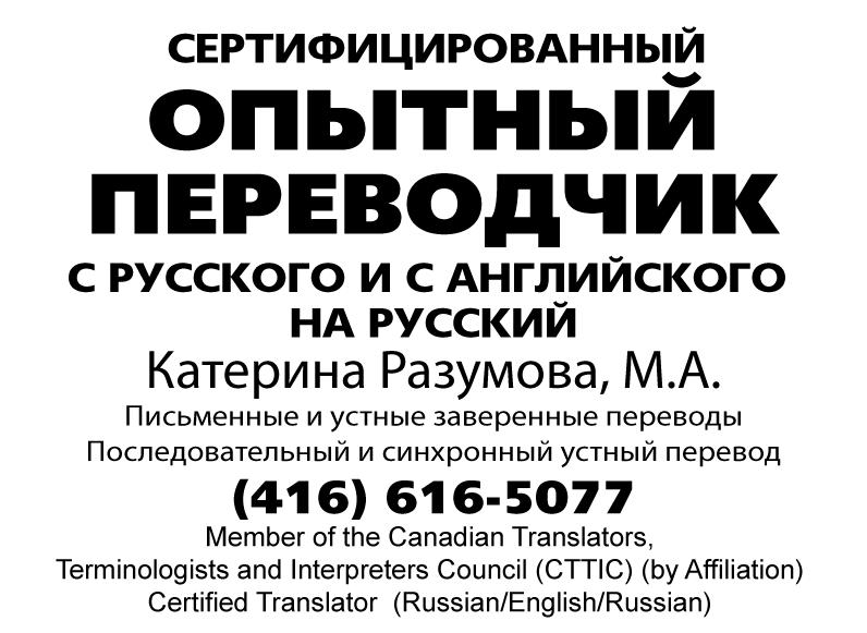 с опытом работы в Канаде и СНГ. Реальная помощь и успех! Работаем также в режиме онлайн. (416) 498-4199