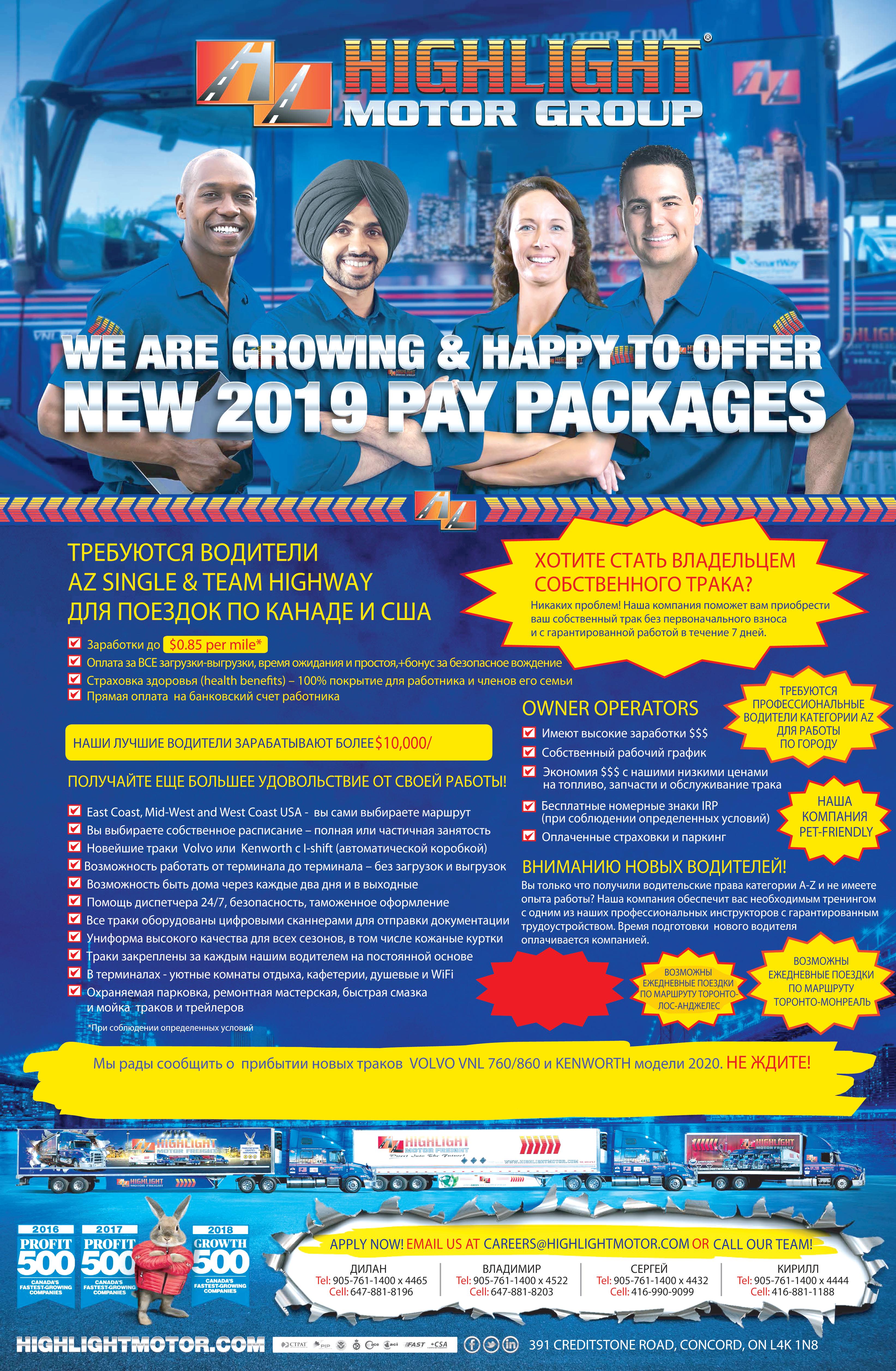 12 416-663–3999 November 11, 2022 №1292 www russiaNexpress Net «торонто экспресс» отдел рекламы «торонто экспресс» МЕСЯЦ Станьте одним из первых получателей самого современного и комфортабельного трака! ЗВОНИТЕ НАМ СЕГОДНЯ И ПРИСОЕДИНЯЙТЕСЬ К НАШЕЙ СЕМЬЕ HIGHLIGHT С БОЛЕЕ ЧЕМ 850 УСПЕШНЫМИ И ДОВОЛЬНЫМИ РАБОТНИКАМИ! ТРЕБУЮТСЯ ДОПОЛНИТЕЛЬНЫЕ ДИСПЕТЧЕРА 7 ОКСАНА 905-761-1400 х 4482 ДМИТРИЙ 905-761-1400 ext. 4465 Cell: 647-884-8196 ВЛАДИМИР 647-881-8203 СЕРГЕЙ 905-761-1400 х 4432 Cell: 416-990-9099 KENWORTH, VOLVO модели 2022 года. НЕ ЖДИТЕ!