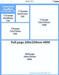 Частные объявления - €2 сроком на 60 дней Коммерческие объявления - €5 сроком на 14 дней Внимание! Выгодное предложение: Коммерческое объявление €15 Премиальное объявление на сайте на 2 месяца 4 публикации на наших страничках в социальных сетях 2 публикации в «Нашей газете»