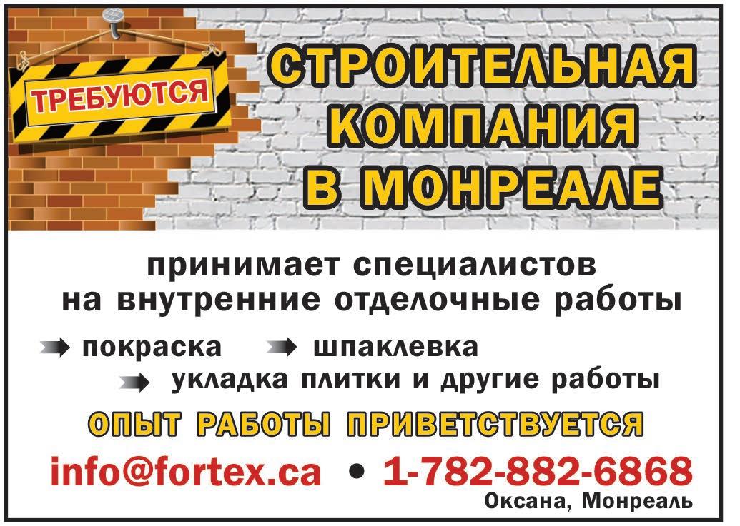 без на внутренние строительные работы. (438) 877-1973 , Михаил •Клинике“De Sante” снаработаннойклиентуройсрочнотребуютсямассажистки(возрастзначения неимеет) сопытомибез: возможно обучениесполучениемДиплома. (514) 374-5522 (10:00 - 20:00)