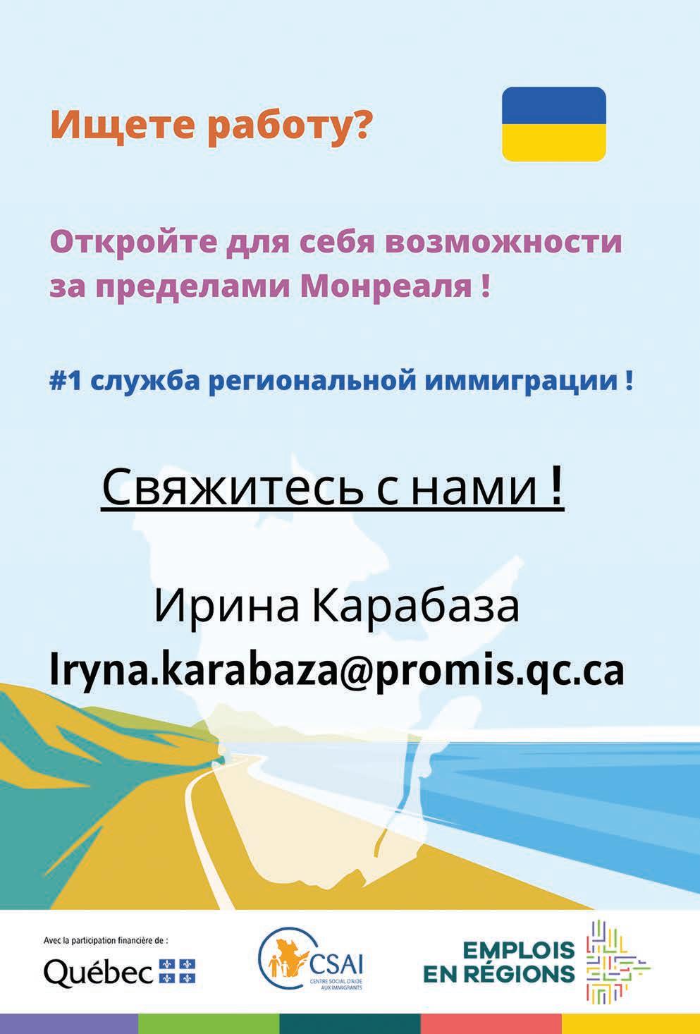 • В офисе редакции газеты “Место встречи - Монреаль” сдается комната для работы бухгалтеру или другому специалисту. Предоставляем: официальный адрес, рабочий стол, телефонную линию, интернет, а также возможность работать в выходные дни. (514) 726-9945 , Наталья • Сдаетсябольшая отремонтированная31/2 в центре города рядом с метро и AtwaterMarket. $1400/мес. (514) 653-1506 , Марина