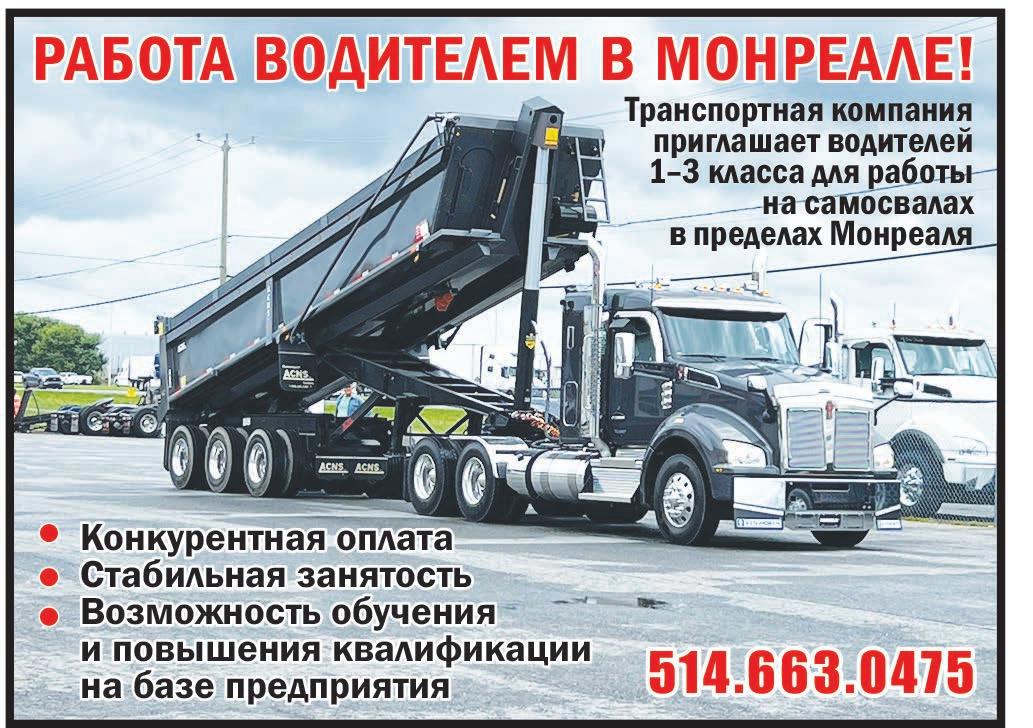 • Перевозки на траке 5 класса (20ft) по всему Монреалю (раз в неделю - Торонто), в том числе доставка пианино. (514) 261-7688 , Александр; (438) 938-3526 , Сергей