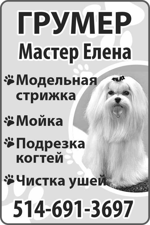 • Профессиональныйпарикмахерпредлагаетуслугидля всей семьи. Разум-ныецены. Работаю по адресу: 1631 Salaberry, H3M 1K3. Бесплатнаяпарковка. (514) 951-7989, Марина УСлУги