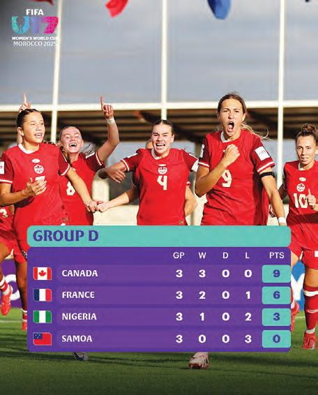 Канадыувереннопродвигаетсяврешающуюстадиюсоревнований,выигравукомандНигерии 4-1иСамоа6-0.ВминувшуюсубботуКанада обыгралаФранциюсо счетом2:1изанялапервоеместовгруппеD.Две сборныеизпредварительнойгруппыD,Канада иФранция,обеспечили себеквалификациюв 1/16финала,который будетпродолжен28октября.Двелучшиекомандывкаждойизшести групп,атакжечетыре лучшихкоманды,занявшиетретьиместа,выходятв1/8финала.Впревыевсоревнованияхвыступаютсразу24сборные.Мировоепервенство,проходящеевМарокко,завершится8ноября.