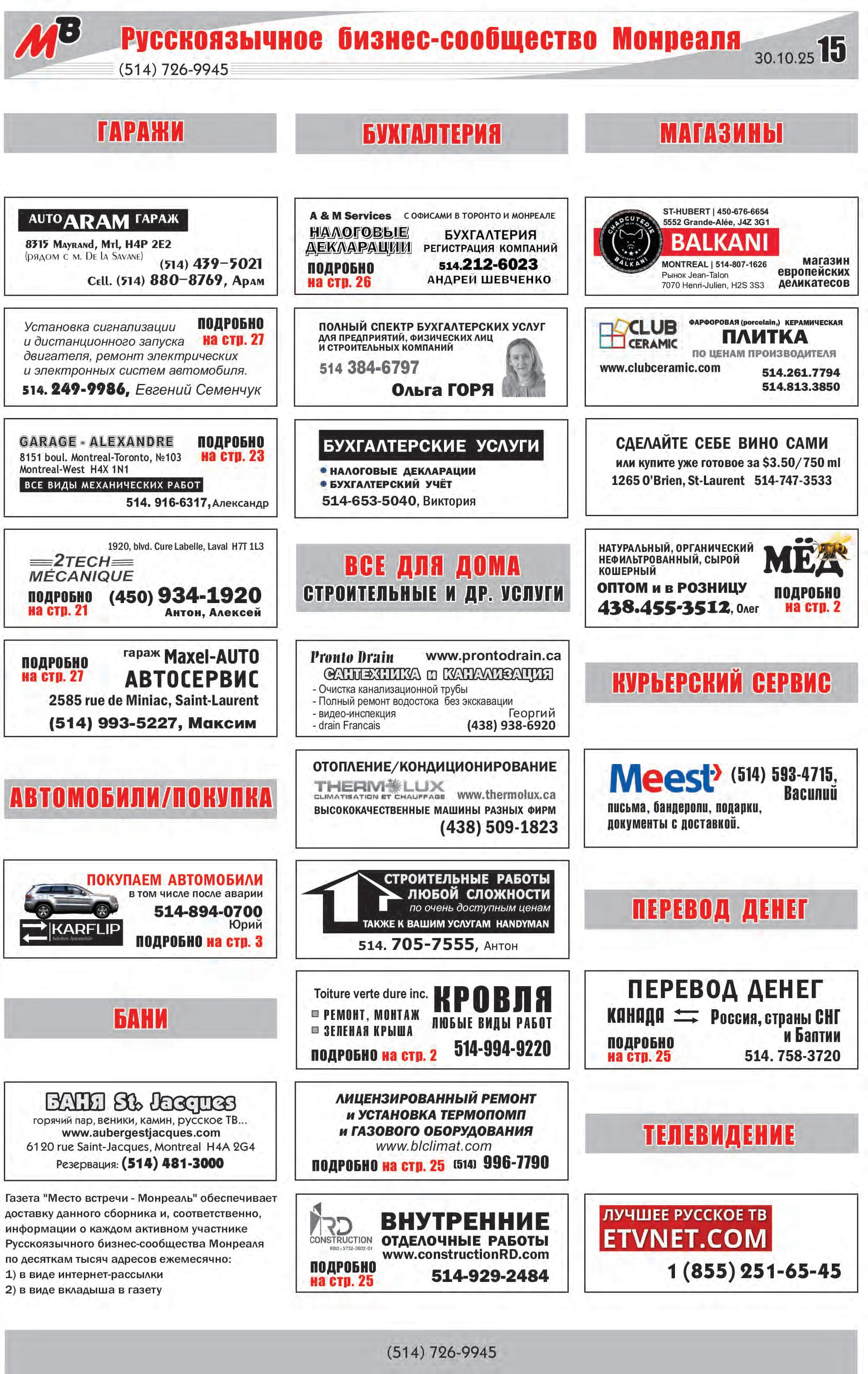 www.constructionberezovski.com (514) 814-4122 , Вадим • Всевидыстроительныхработпо оченьдоступнымценам. Установка кухоньиванныхкомнат, отделка бейсментов. Керамика,полы, двери, окна. Перепланировка. Покраскаи многоедругое. (514) 256-1054; (514) 705-7555 , Антон