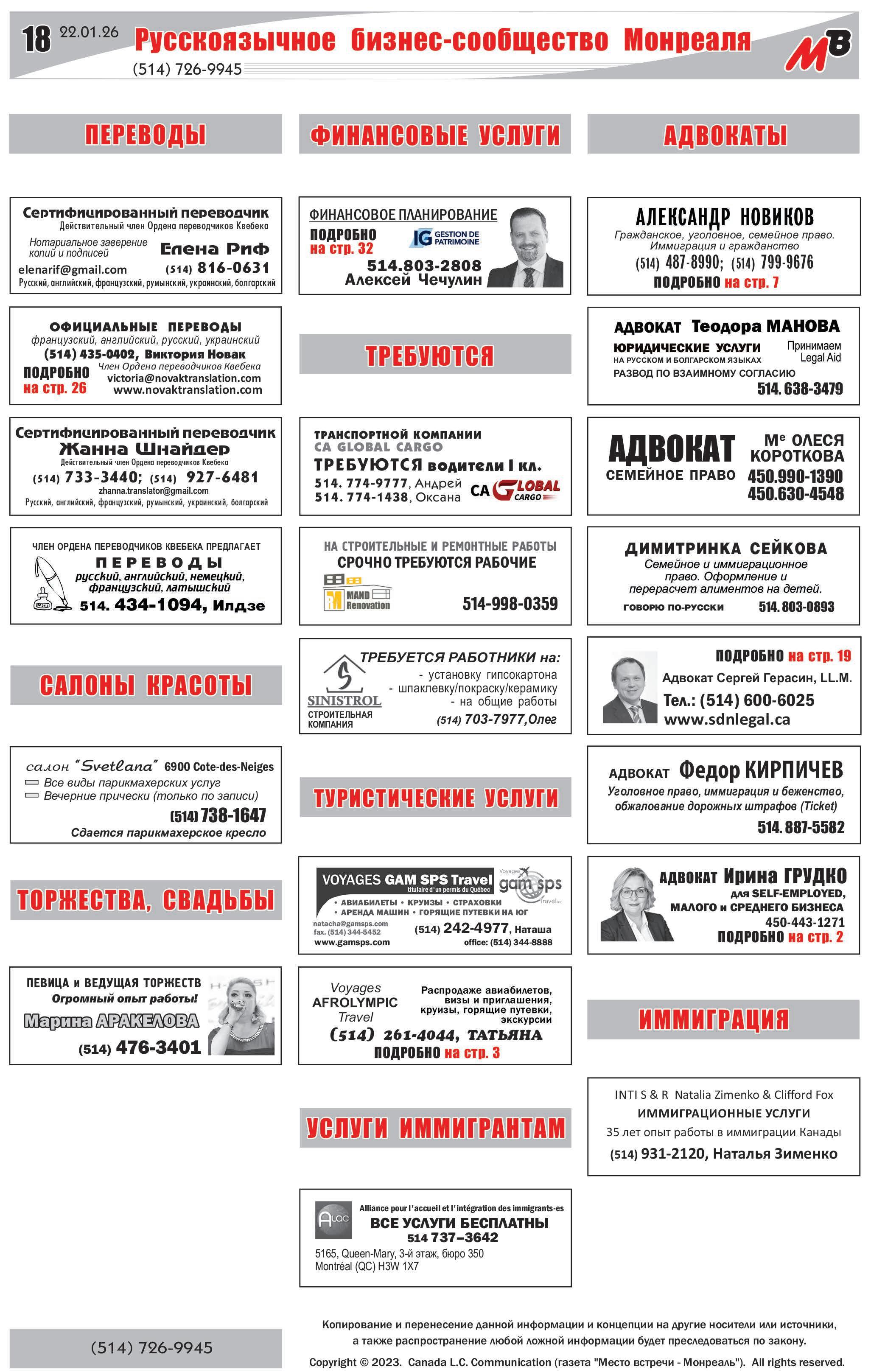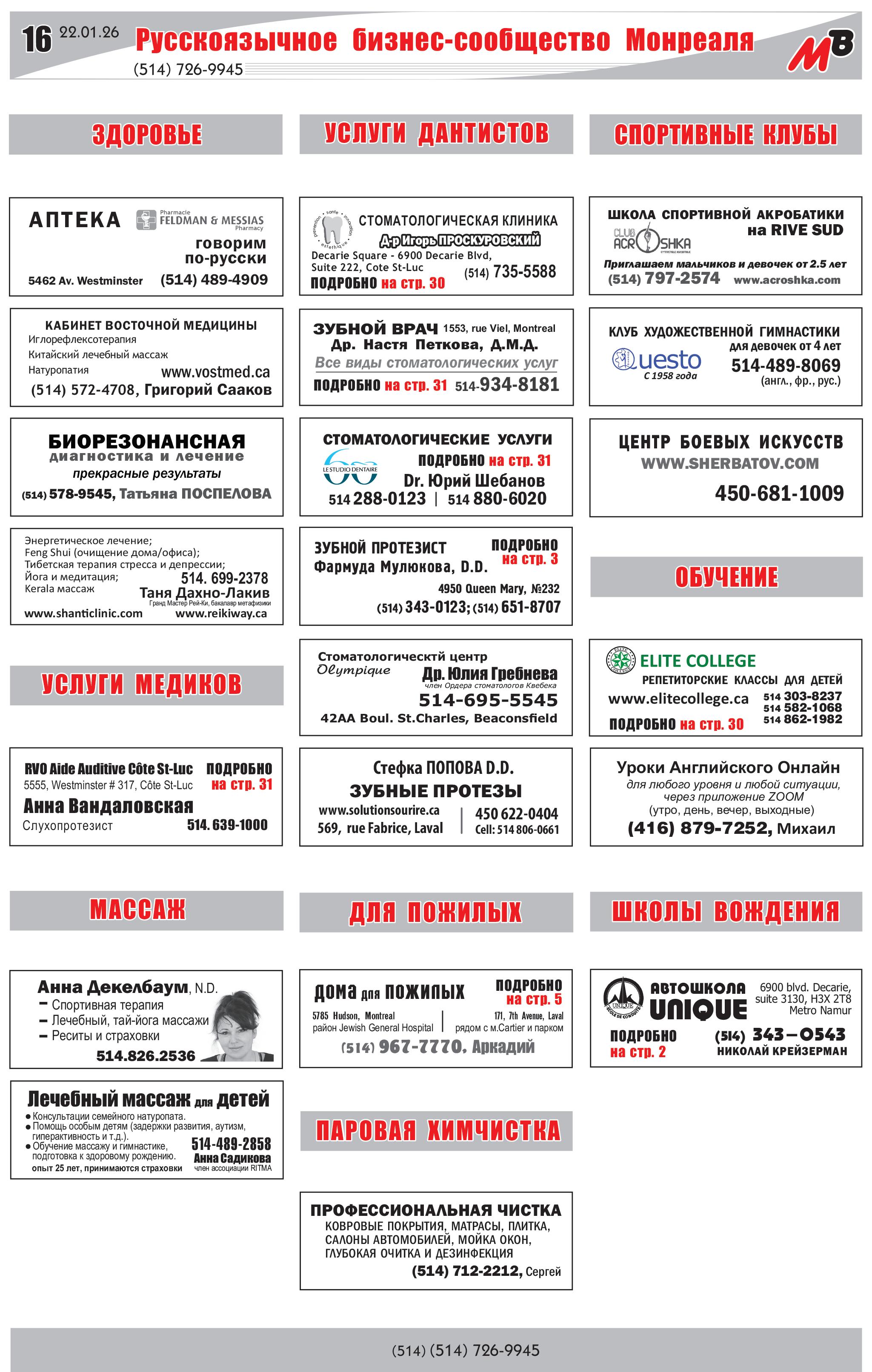 субботы). (514) 223-2425, ylibka13@gmail.com