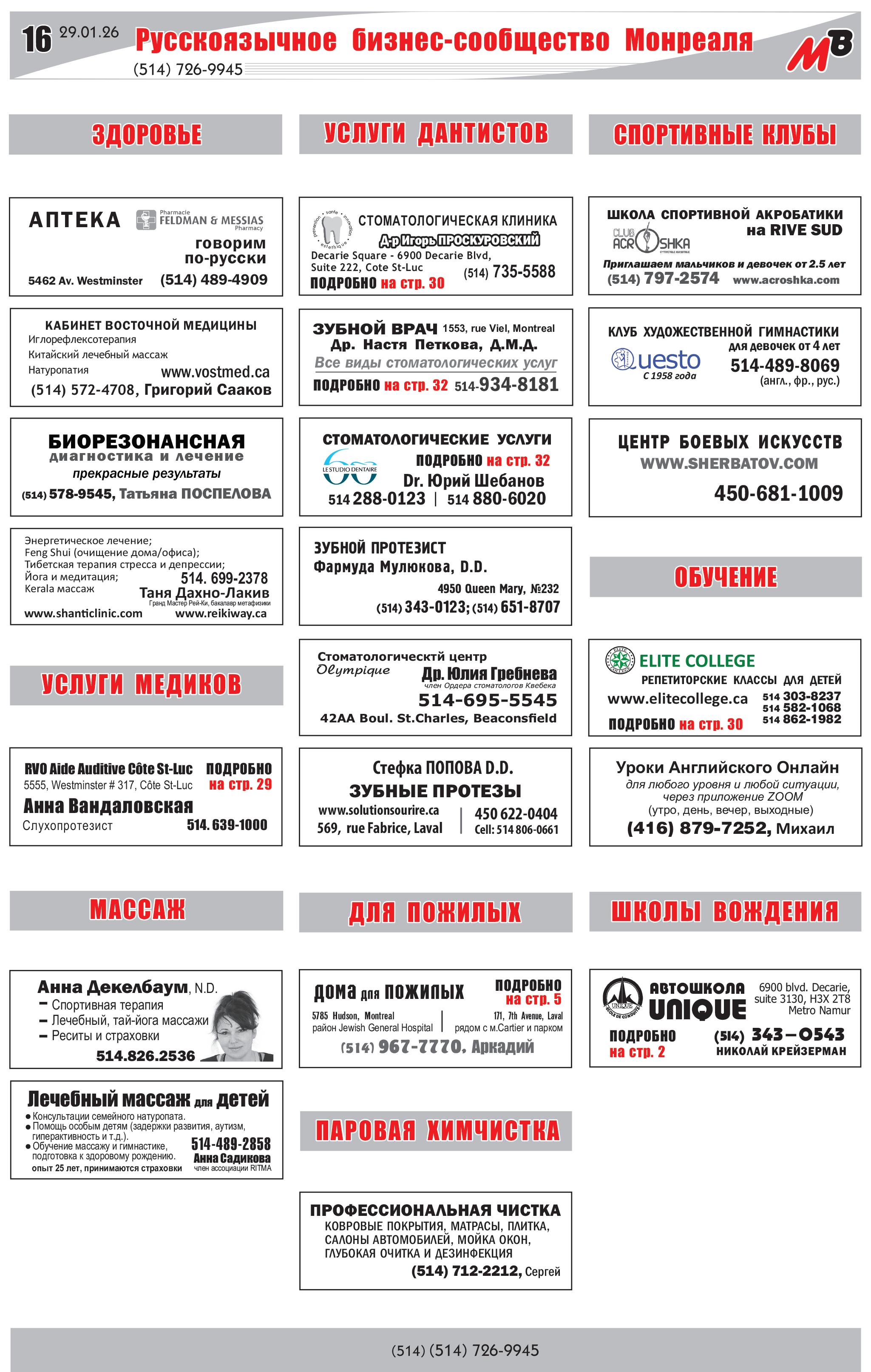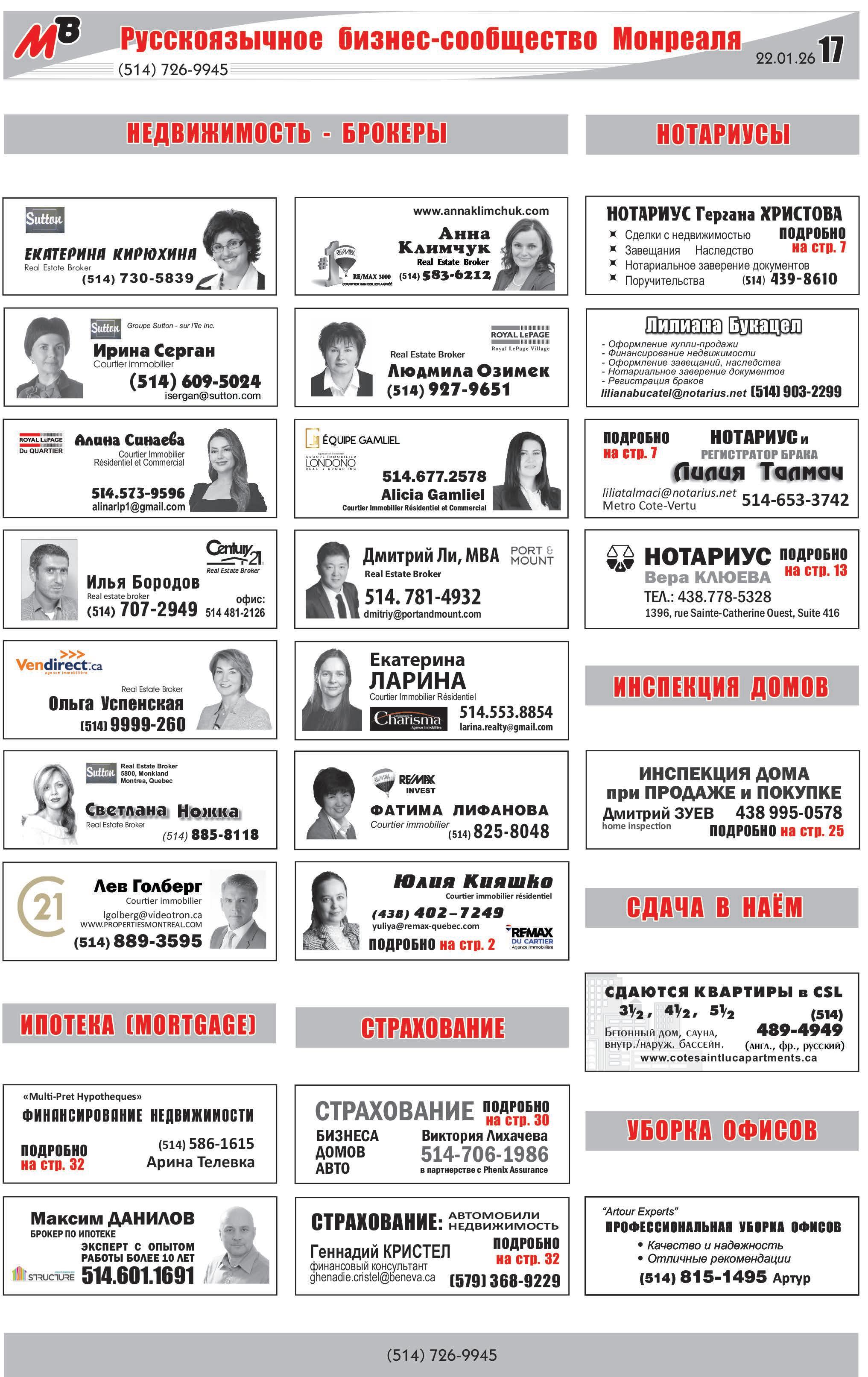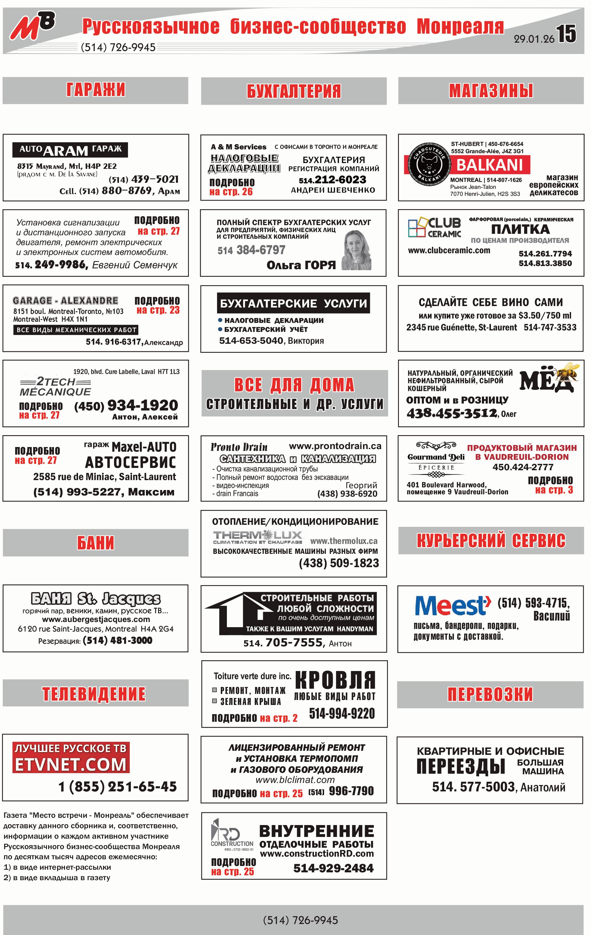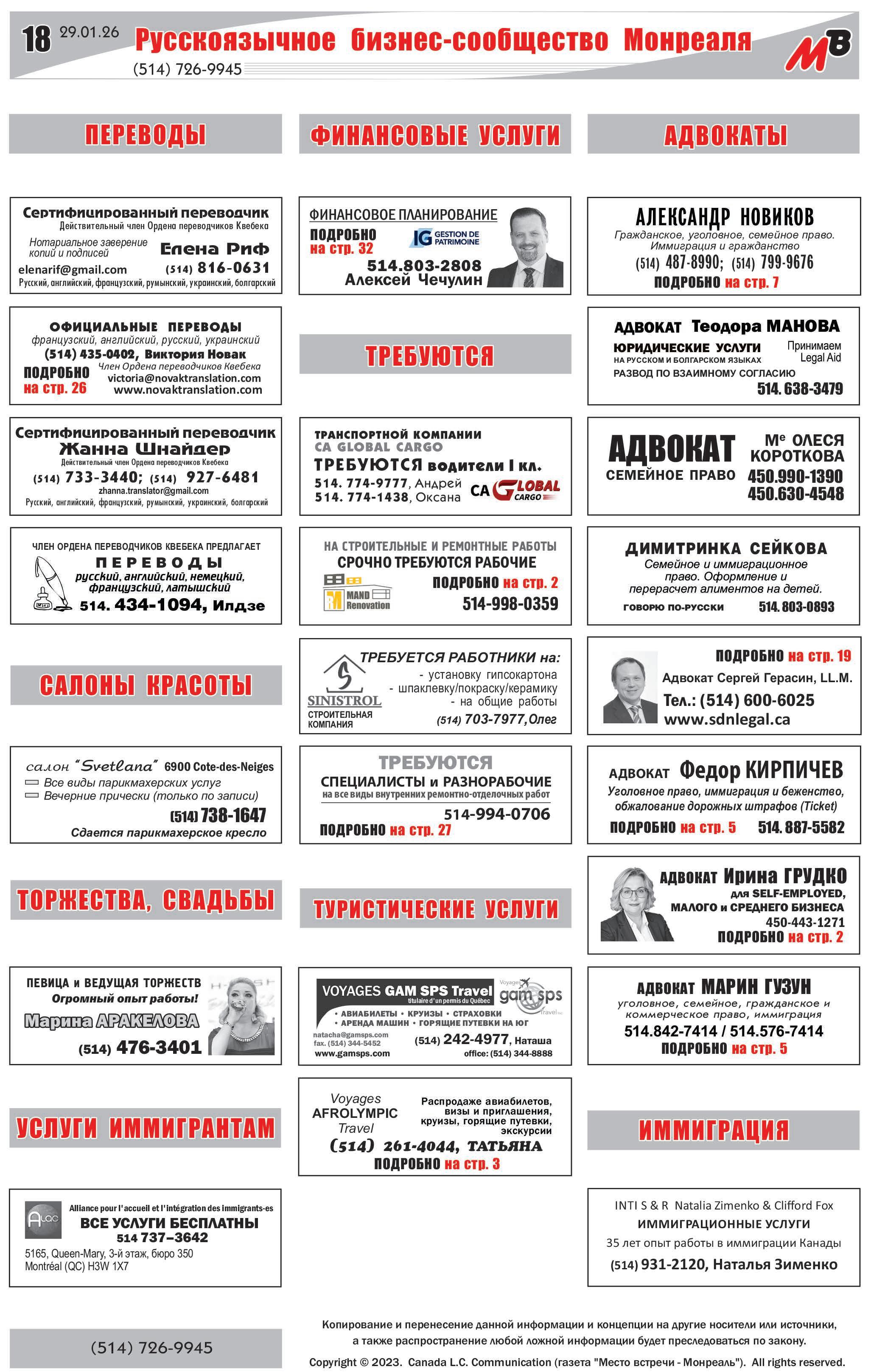 • В офисе редакции газеты “Место встречи - Монреаль” сдается комната для работы бухгалтеру или другому специалисту. Предоставляем: официальный адрес, рабочий стол, телефонную линию, интернет, а также возможность работать в выходные дни. (514)