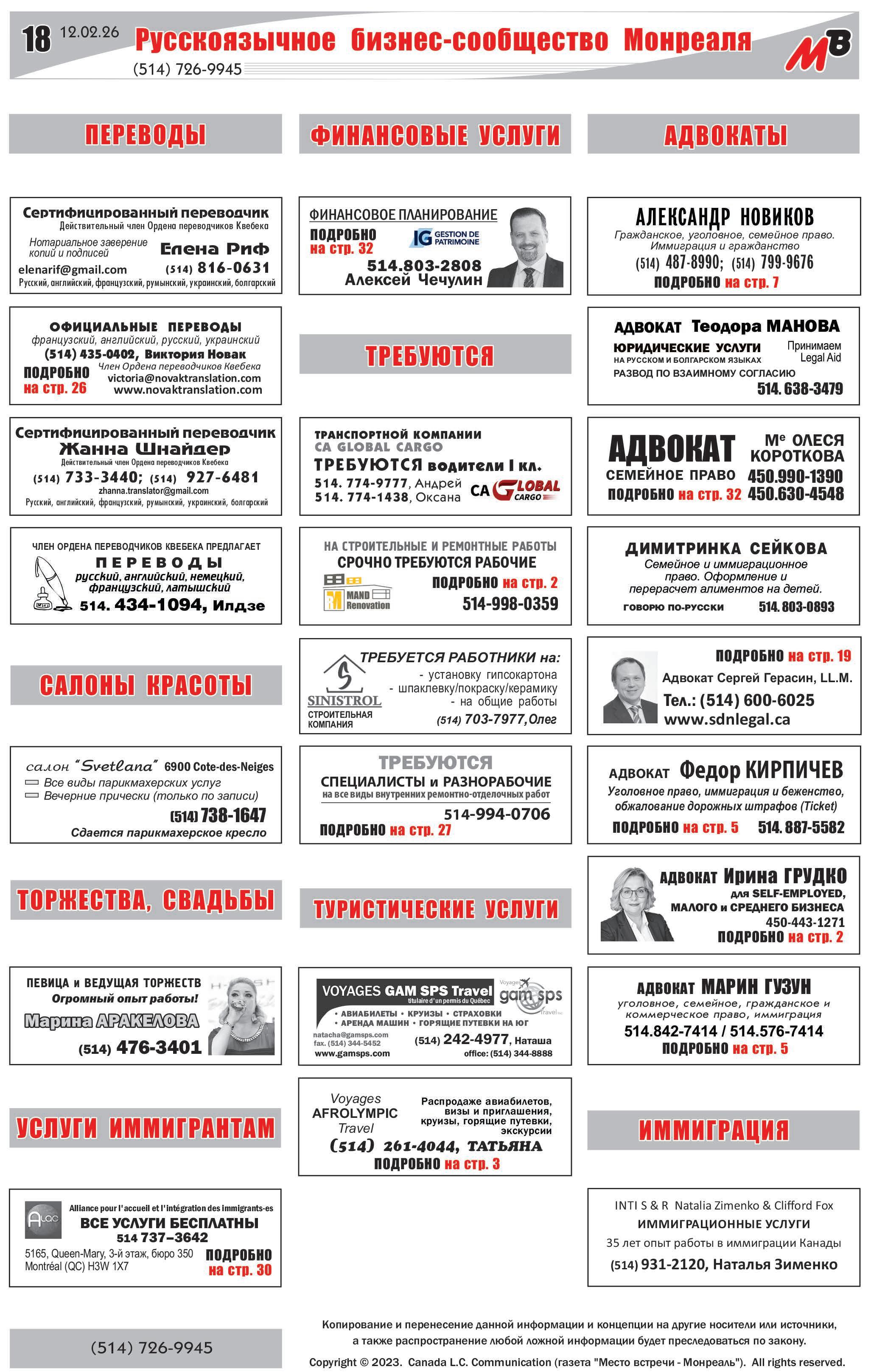 • В офисе редакции газеты “Место встречи - Монреаль” сдается комната для работы бухгалтеру или другому специалисту. Предоставляем: официальный адрес, рабочий стол, телефонную линию, интернет, а также