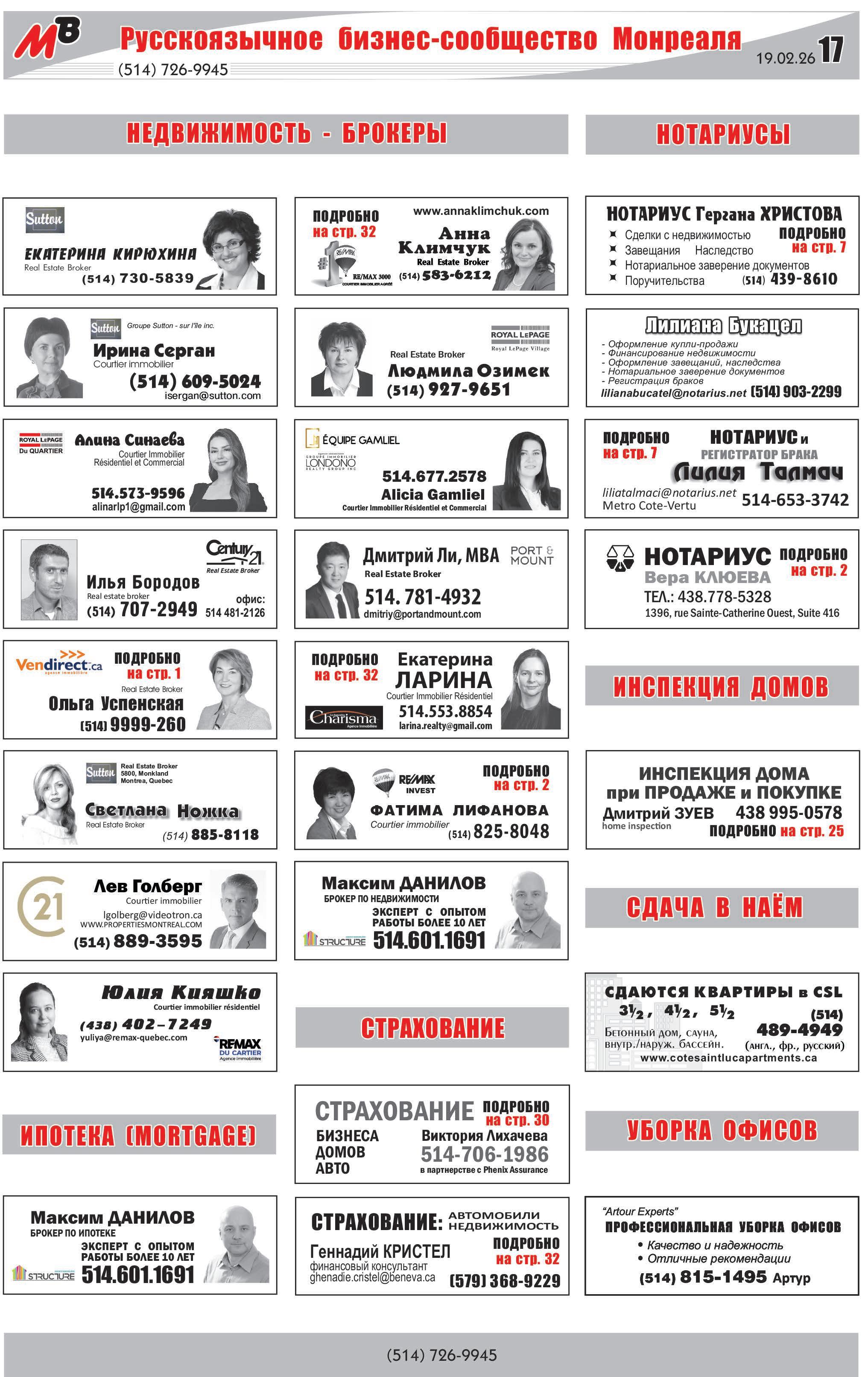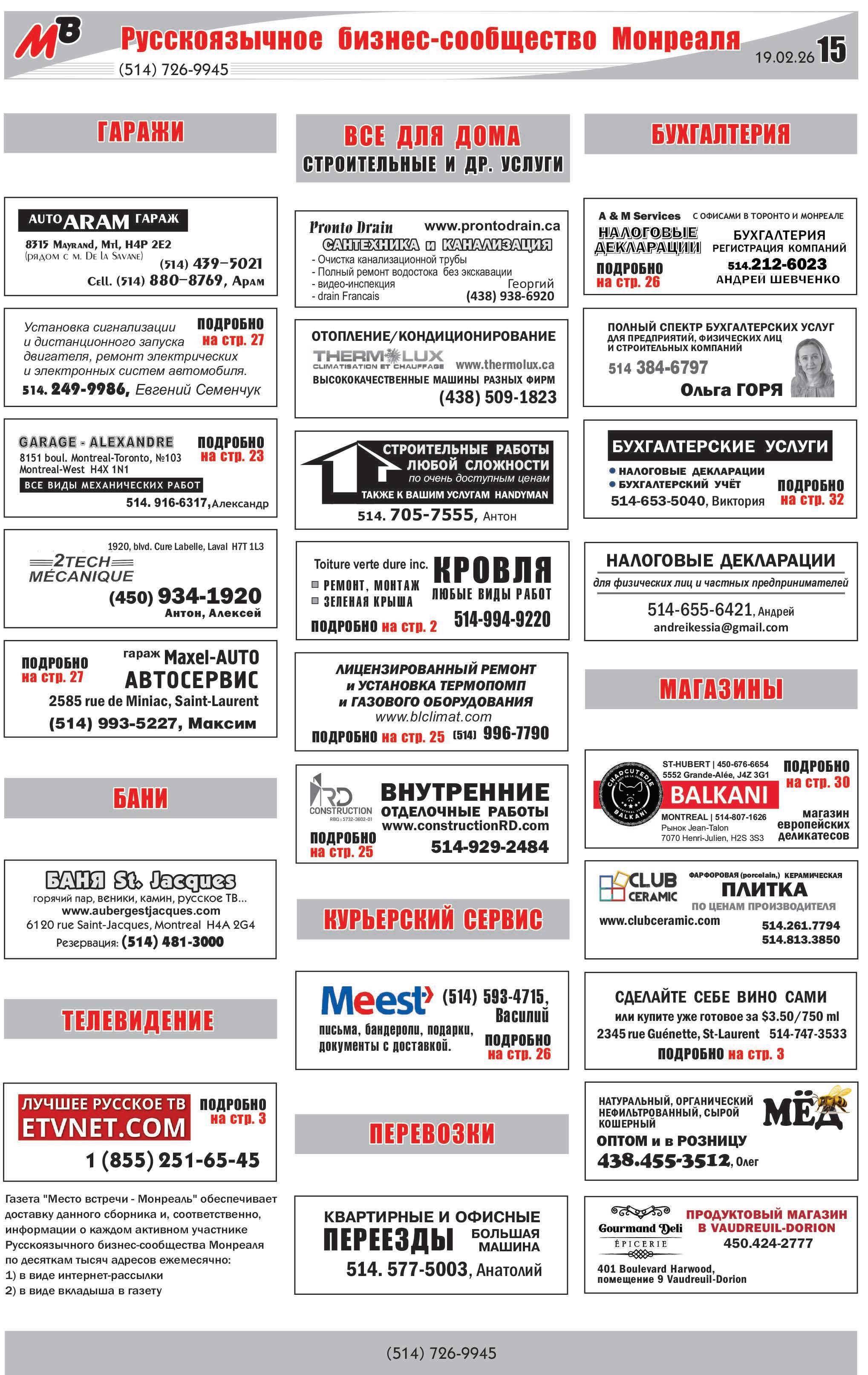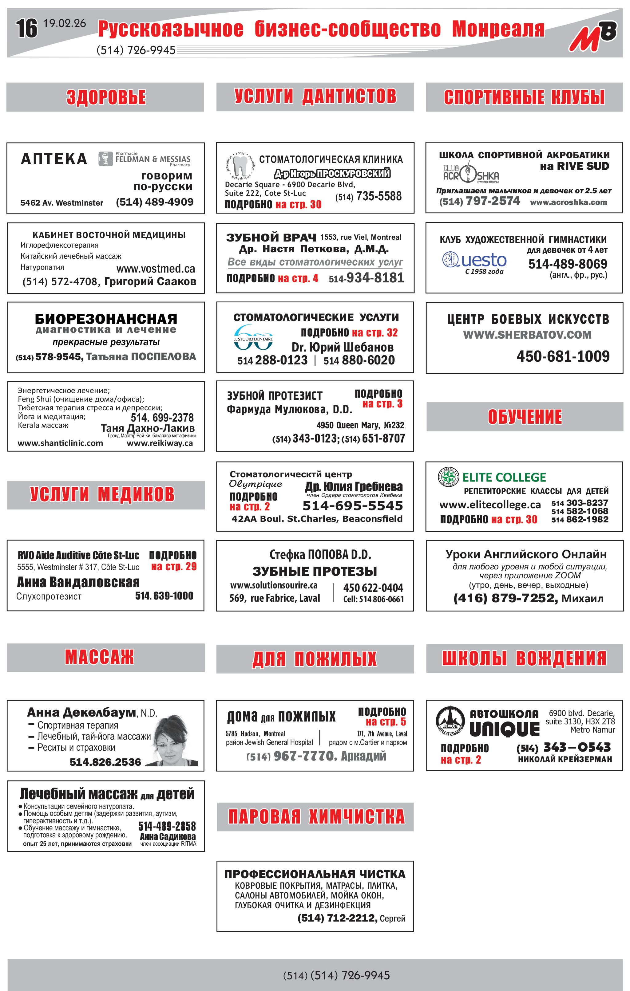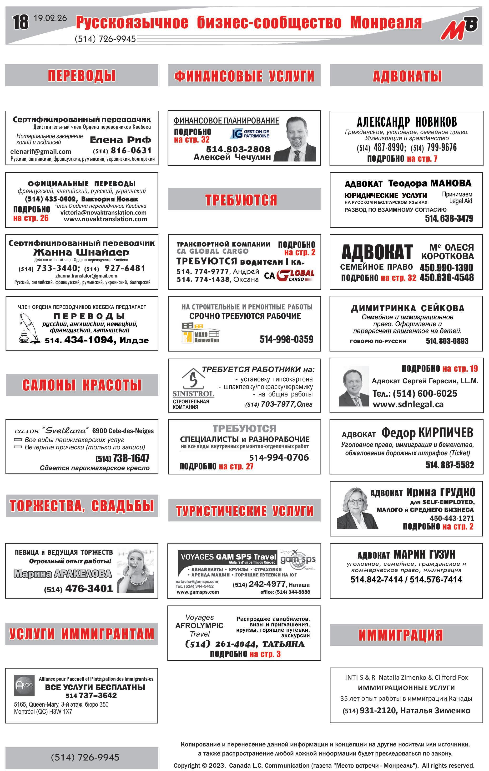 • Русскоязычное бюро знакомств “Улыбка” регистрирует всех и поможет найти того, кого вы ищите. Звоните с 11:00 до 18:00 (кроме пятницы и субботы). (514) 223-2425, ylibka13@gmail.com