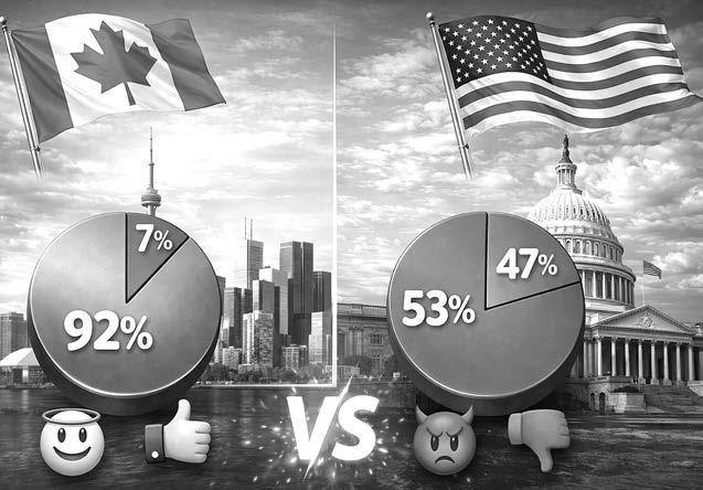 ольшинствоамериканцевсчитаютсвоих согражданморальноплохими,тогдакак канадцыдемонстрируютпротивоположное отношение.Ктакомувыводупришлоновое