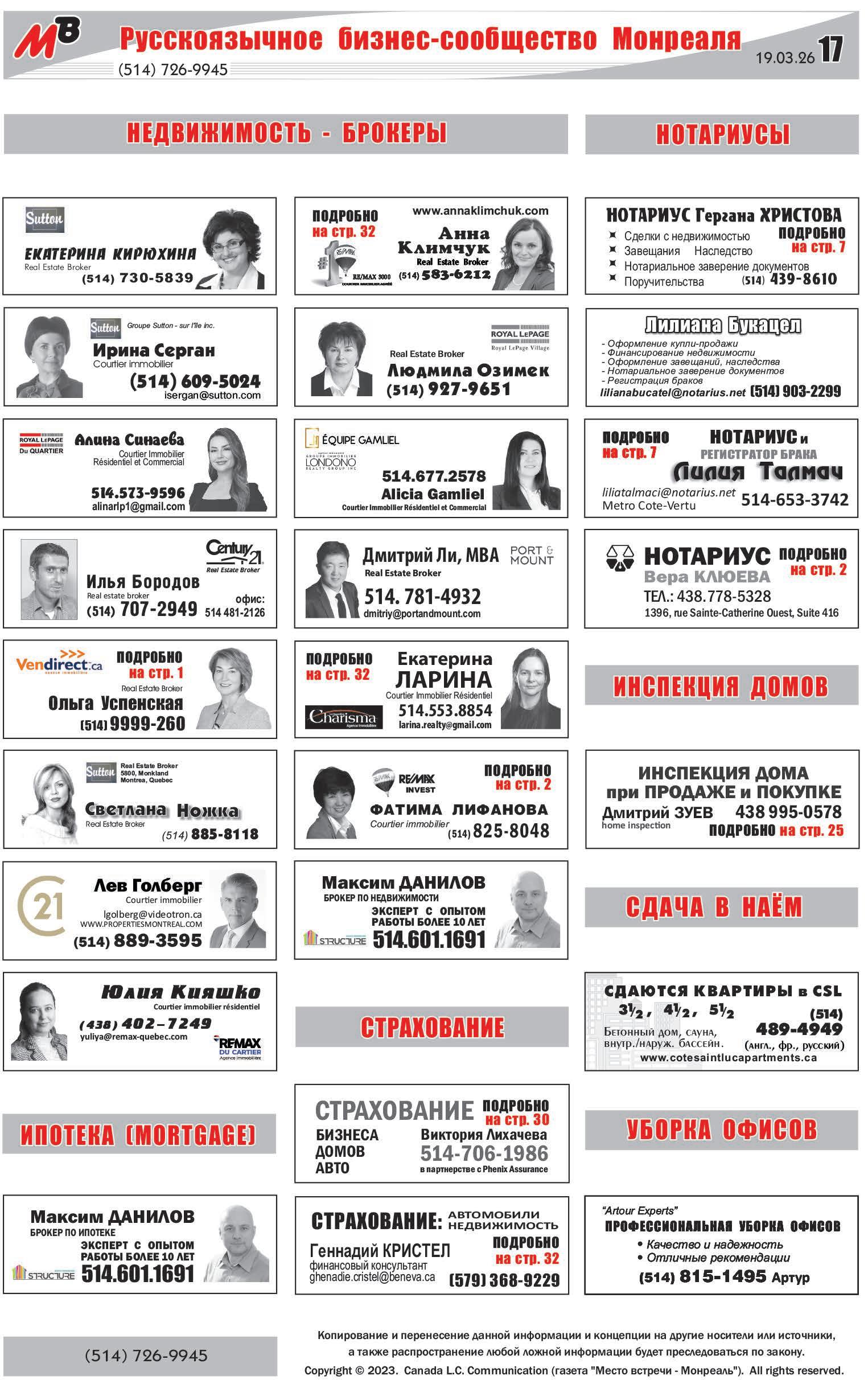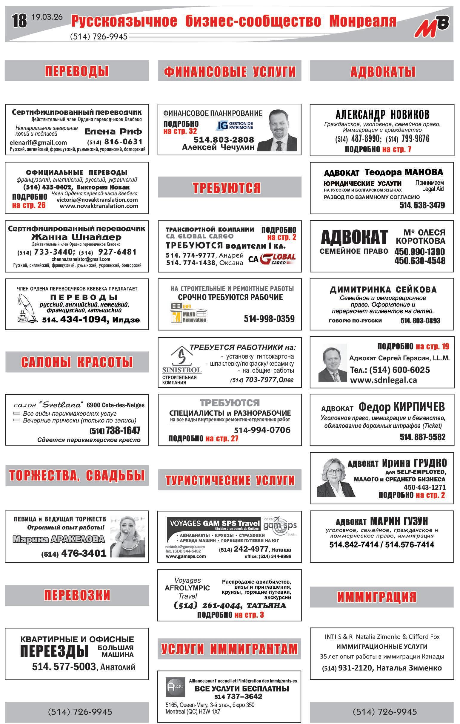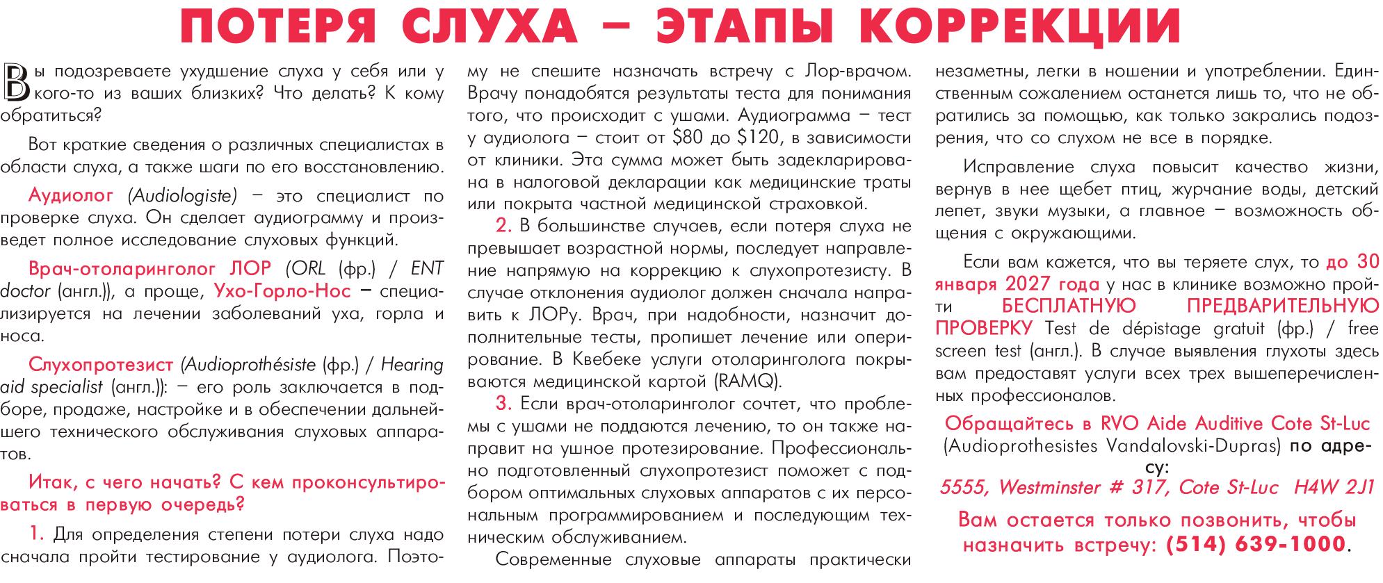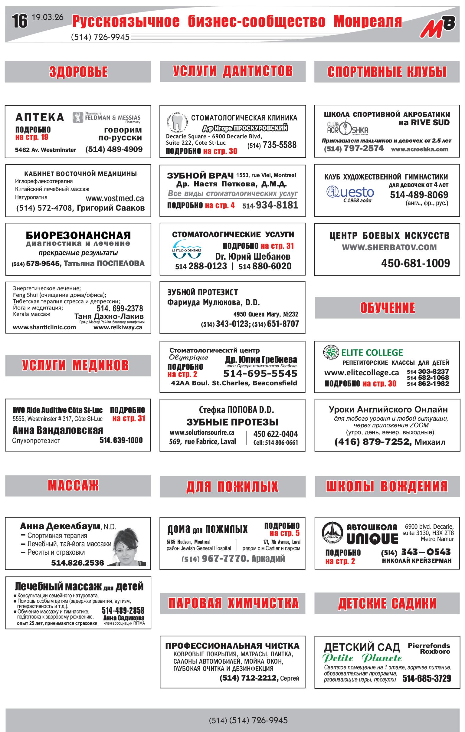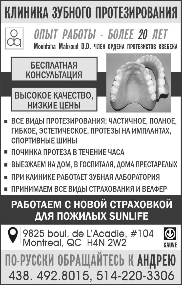 • Русскоязычное бюро знакомств “Улыбка” регистрирует всех и поможет найти того, кого вы ищите. Звоните с 11:00 до 18:00 (кроме пятницы и субботы). (514) 223-2425, ylibka13@gmail.com