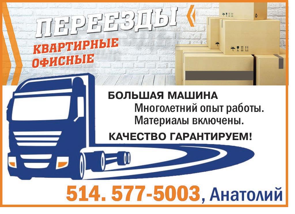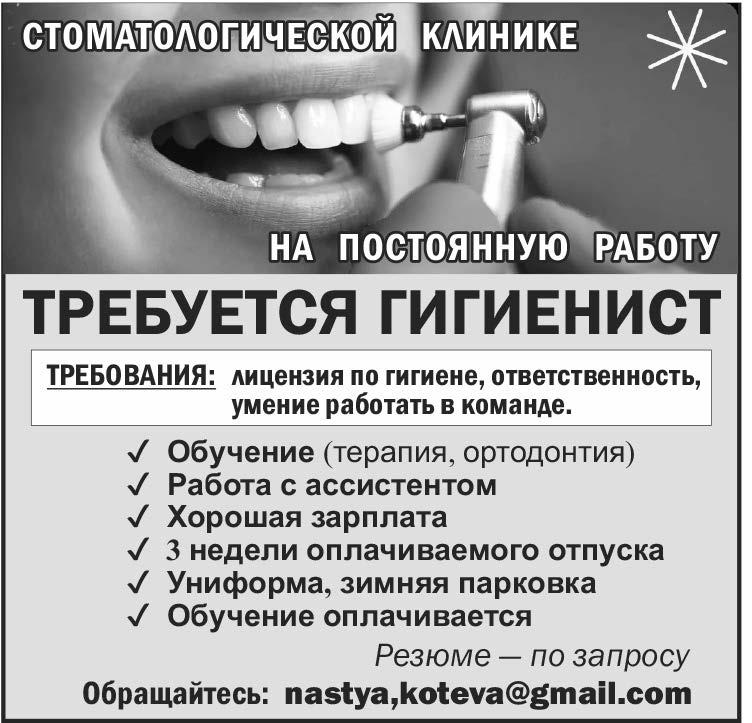 (514) 386-9900 • Требуется серьезная опытная женщина на уборку квартиры 3 раза в неделю. Пожалуйста, обращайтесь к Любе (514) 731-2176