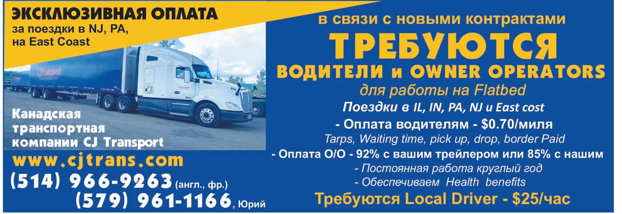• Требуются водители 1 класса (с опытом и без) на маршрут СШАКанада. 3000 + mi. (514) 465-9942