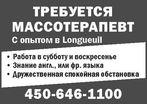 •Требуютсямассажисткидо40 лет (с опытомибез).Район Snowdon. (514) 349-9066