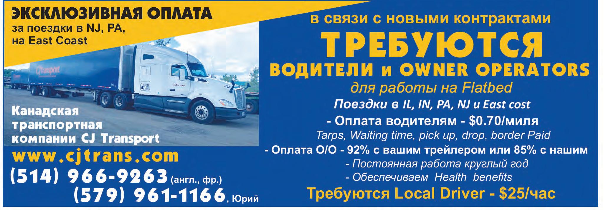ТРебуюТся водиТели • Требуются водители 1 класса (с опытом и без) на маршрут СШАКанада. 3000 + mi. (514) 465-9942