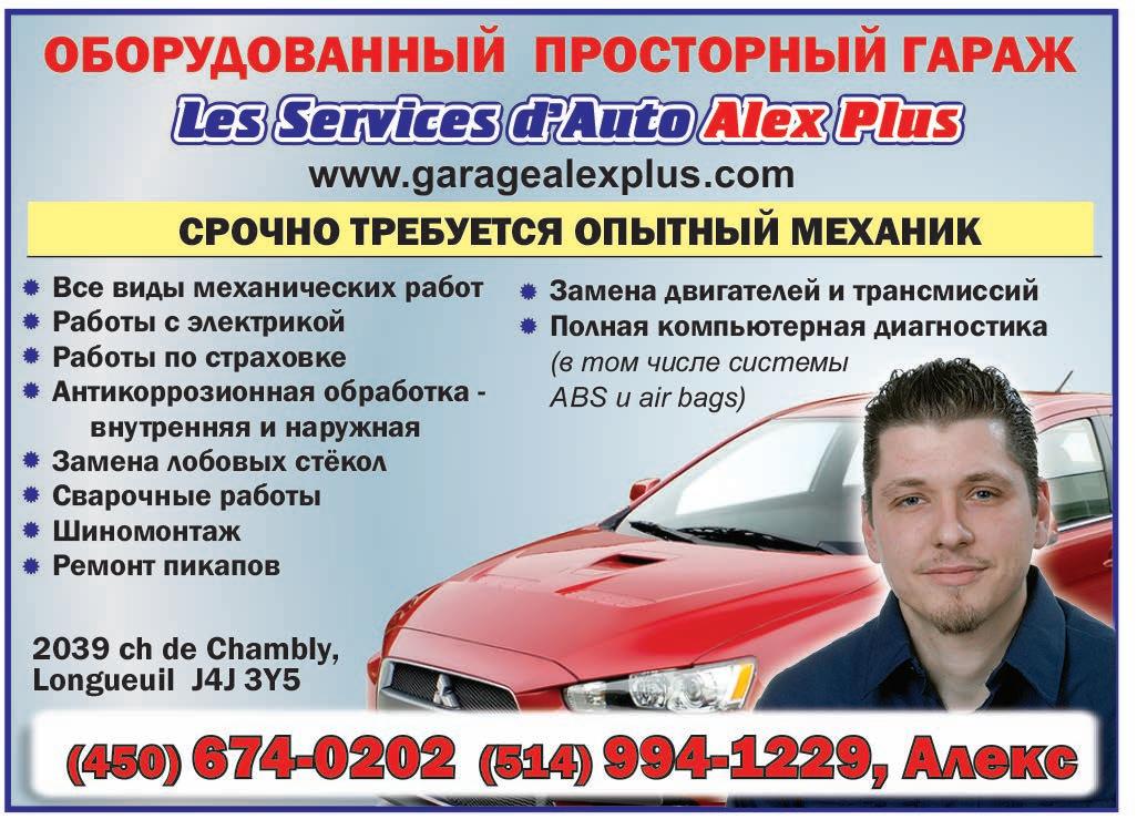 •Гаражутребуетсямеханикс опытомработынеменее3-хлет. (514) 916-6317 ,Александр