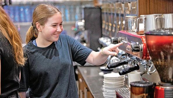 1 3 - л е т н я я Э м м а В а л и к е т т у ж е г о д р а б о т а е т п о м о щ н и ц е й в C a f é d e l a B r û l e r i e в Г р а н б и (Granby)