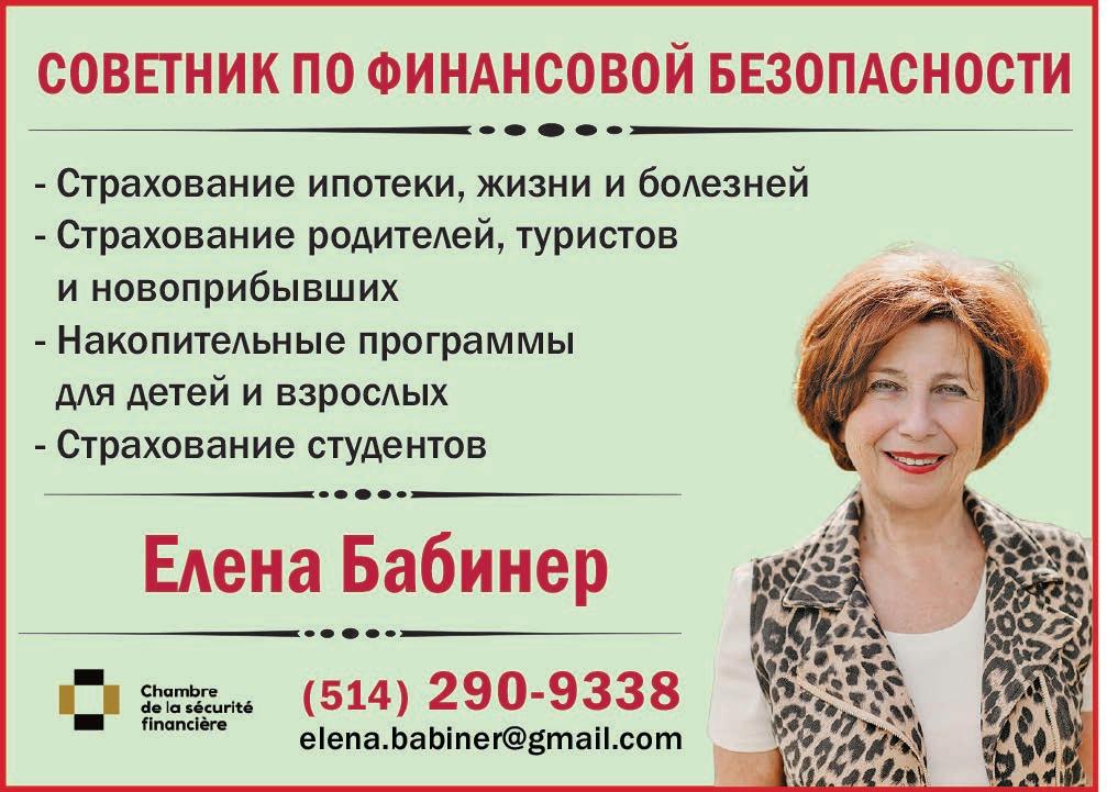 ¹ 2 3 ( 1 1 9 2 ) , 9 и ю н я 2 0 2 3 к в а ш и м у с л у г а м 1144 ( 5 1 4 ) 7 2 6 - 9 9 4 5 5253 Blvd. Decarie, #312, Montreal H3W 3C3 L c c o m @ t o t a l n e t www.russianmontreal.ca