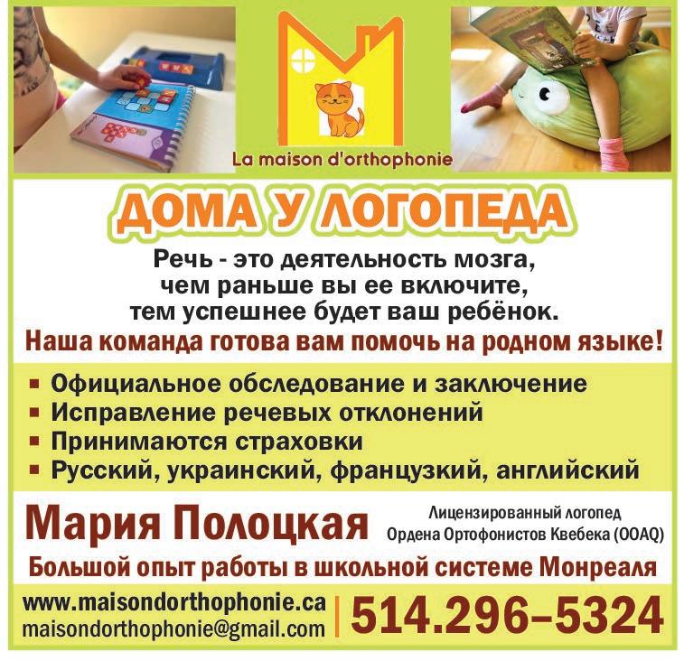 до 21:00. (514) 223-2425, ylibka13@gmail.com