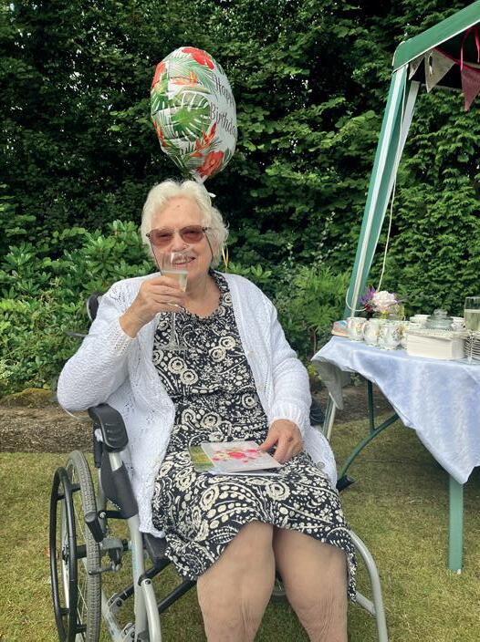 knee while their parents enjoyed a peaceful cup of tea. The garden party was organised by Ruth’s friends Joy, Kate and Sophie, with flowers, cake, prosecco and delicious food. Luckily the weather was perfect, and Ruth very much enjoyed her party and loved seeing everyone together.