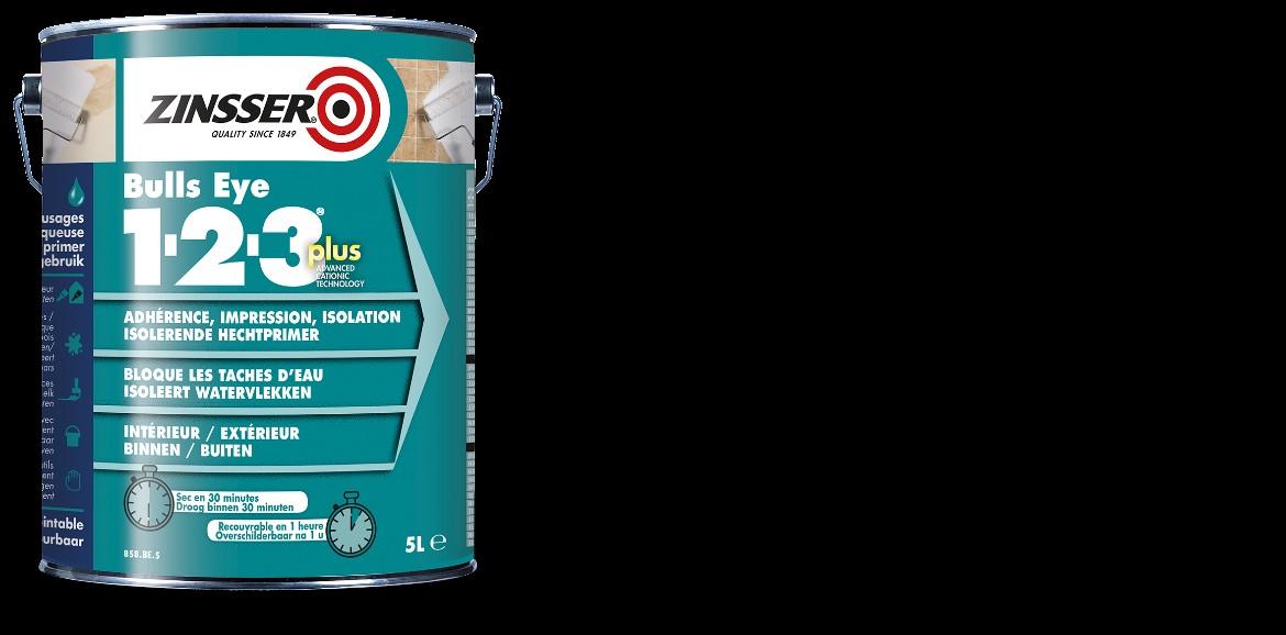 • 123 Plus heeft op watervlekken dezelfde blokkeringseigenchappen dan soortgelijke primers op oplosmiddelbasis = meest opmerkelijke functie