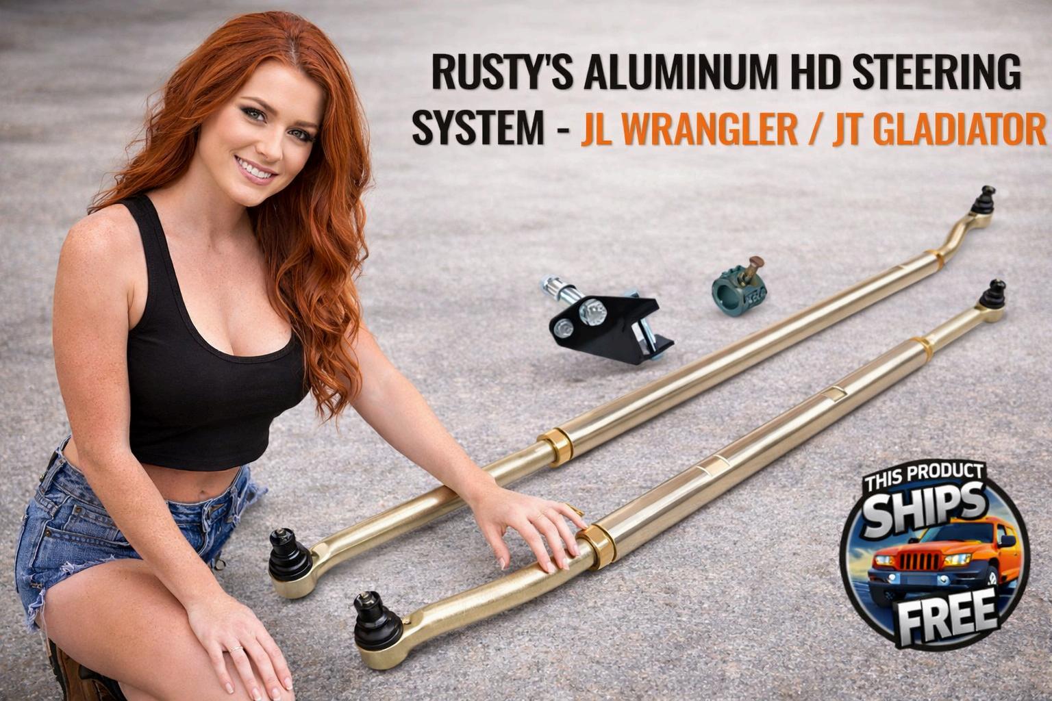 Rusty’s Off Road offers strong steering upgrades that combine strength and lightweight design. A Jeep aluminum HD steering system uses durable materials to support heavy off-road use while keeping weight down. This upgrade helps reduce stress on steering components and can improve responsiveness when driving over rough terrain. It is designed to work with lifted Jeeps and larger tires, helping maintain better steering control. This option suits builds that need a strong steering setup without adding too much weight.