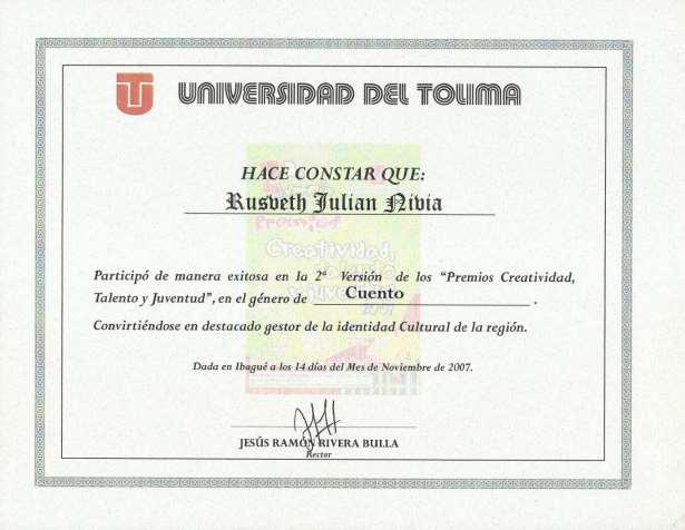 RUSVELT NIVIA CASTELLANOS LOS RECONOCIMIENTOS DEL ARTISTA