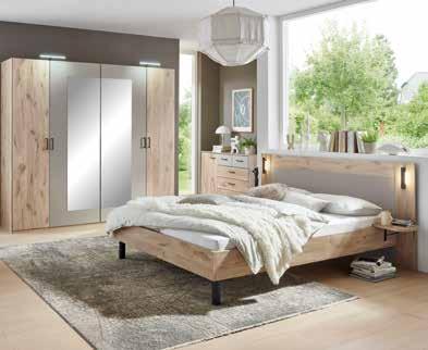 SPALNICA, barva: hrast/siva, sestavljena iz omare, ŠxVxG 225x208x58 cm, postelje 180x200 cm, z LED osvetljavo (energijski razred F), dodatno pohištvo za doplačilo, 203590