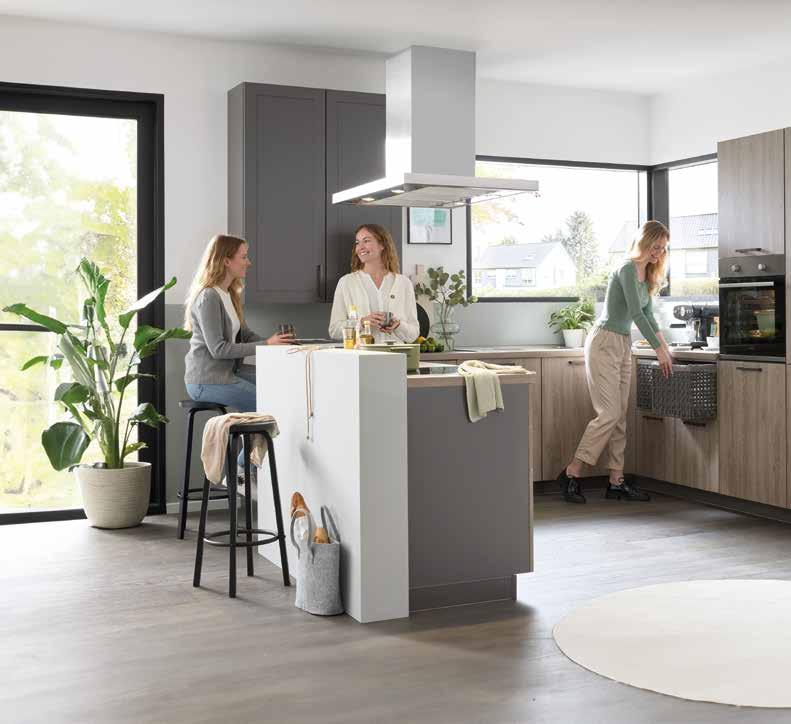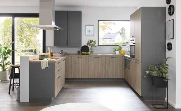 hrast Bergamo, 275x305x275 cm, vklj. z vsemi navedenimi inoks električnimi aparati, na voljo v različnih postavitvah in barvnih kombinacijah. Pomivalni stroj ter pomivalno korito za doplačilo, 202150