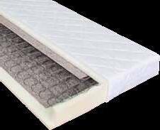 VZMETNICA IZ PENE, 90x200 cm, izdelana iz elastične dvoslojne tkanine (100 % poliester, 190 g/m²) s prešitjem iz 200 g/m² poliestra in 30 g/m² polipropilena, opremljena je s štirimi tekstilnimi zankami za obračanje in štiristransko deljivo zadrgo, prevleka je pralna do 60 °C, ni primerna za sušenje v sušilnem stroju, jedro je iz hladne pene kakovosti RG 35/34, visoko približno 16 cm, z enostavnim 7-conskim rezom, podloga je iz 100 % poliestra, 204468 333,-