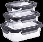 KOMPLET POSOD, 3-delni (1040/640/370 ml), iz borosilikatnega stekla in silikona, primerno za pečico in mikrovalovno pečico, hermetično zaprto, pokrov proti iztekanju, 670168