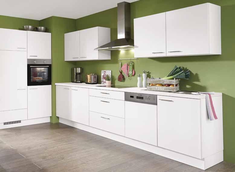 KUHINJA, barva: bela Alpin, 280x240 cm, na voljo v različnih postavitvah in barvnih kombinacijah. Vgradni aparati ter pomivalno korito za doplačilo, 204410/1