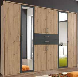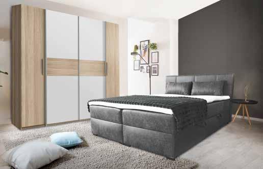 POSTELJA, siva, ležalna površina: 180x200 cm, mere: 289x93x213 cm, 204073. OMARA Z DRSNIMI VRATI, siva, mere: 270x211x60 cm, 204073/02