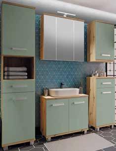 VISOKA OMARA, barva: zelena/hrast Artisan, število vrat: 2, število predalov: 1, ŠxVxG: 40,2x186,8x34,8 cm, 201200, OMARA Z OGLEDALOM, barva: zelena/hrast artisan, število ogledal: 3, vklj. osvetlitev, ŠxVxG: 68,6x68,1x20 cm, 201200/5