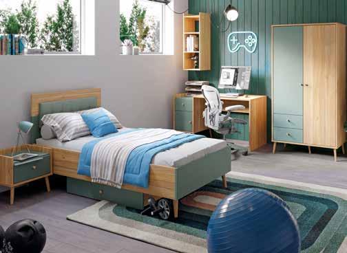 OMARA, Mavuella hrast/zelena, 2 vrata, 2 predala, mere: 96x186x53 cm, 201251 POSTELJA, Mavuella hrast/zelena, ležalna površina: 120x200 cm, mere: 128x100x207 cm, 201251/1