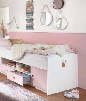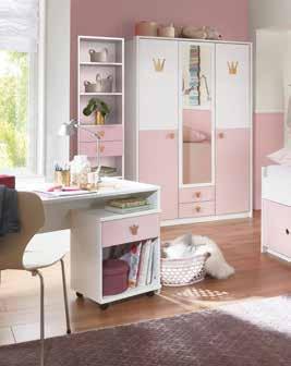 GARDEROBNA OMARA, bela/rožnata, ŠxVxD: 139x199x58 cm, vklj. paspartu in mehko zapiranje, 203790. POSTELJA, barva: bela/ rožnata, 90x200 cm, 2x vrata, 2 predala, 203790/2