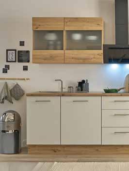 KUHINJA, mat bela, artisan hrast, soft-close, ŠxVxG: 280x210x60 cm. Pomivalno korito, steklokeramična kuhalna plošča, vgradna pečica in napa za doplačilo, 201303