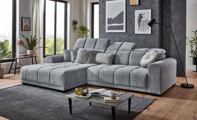 SEDEŽNA GARNITURA, tkanina, siva, vklj. nastavljivi nasloni za glavo, električno nastavljiva globina sedenja in 3 blazine, mere: 195x286 cm, na voljo v različnih postavitvah in barvnih kombinacijah, 204100